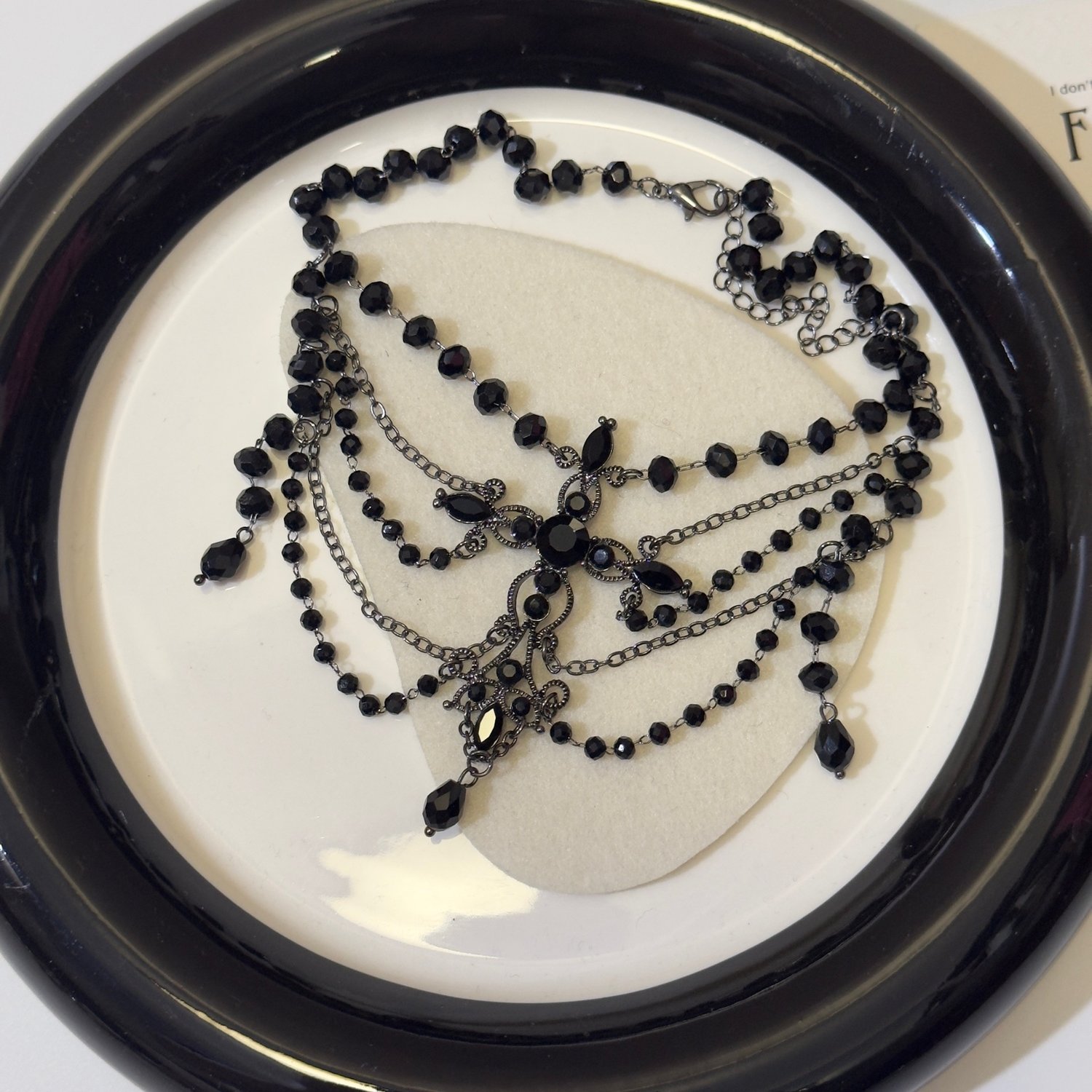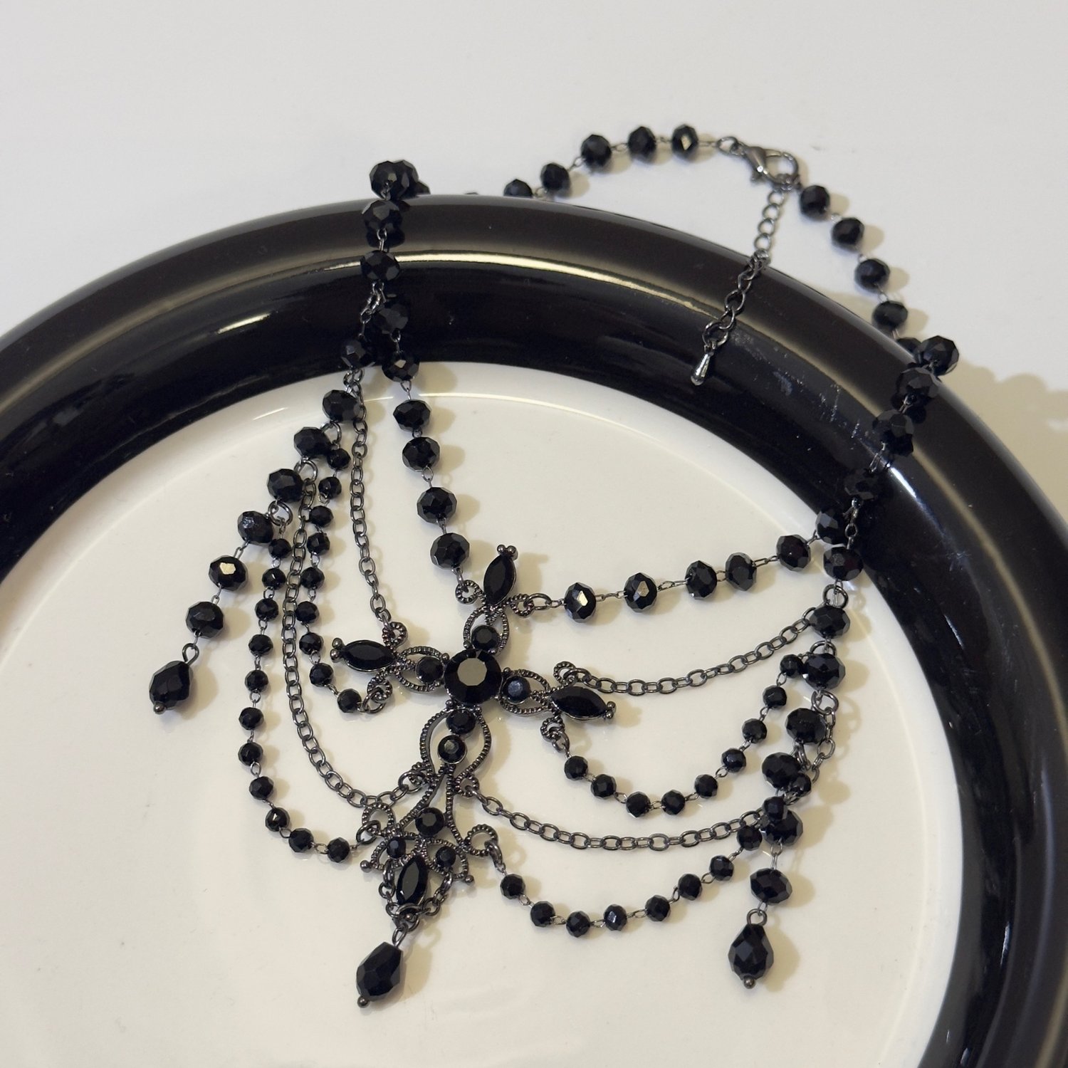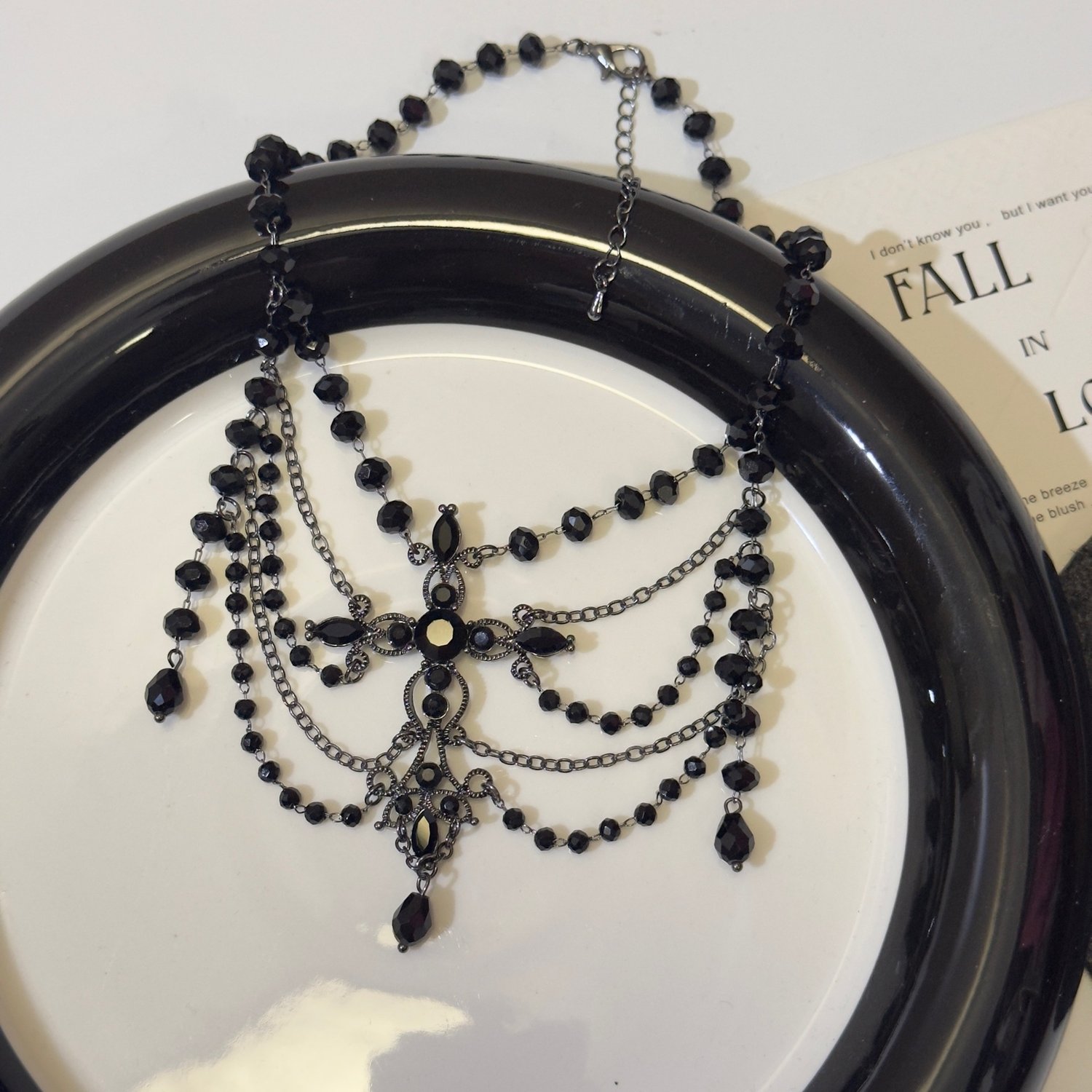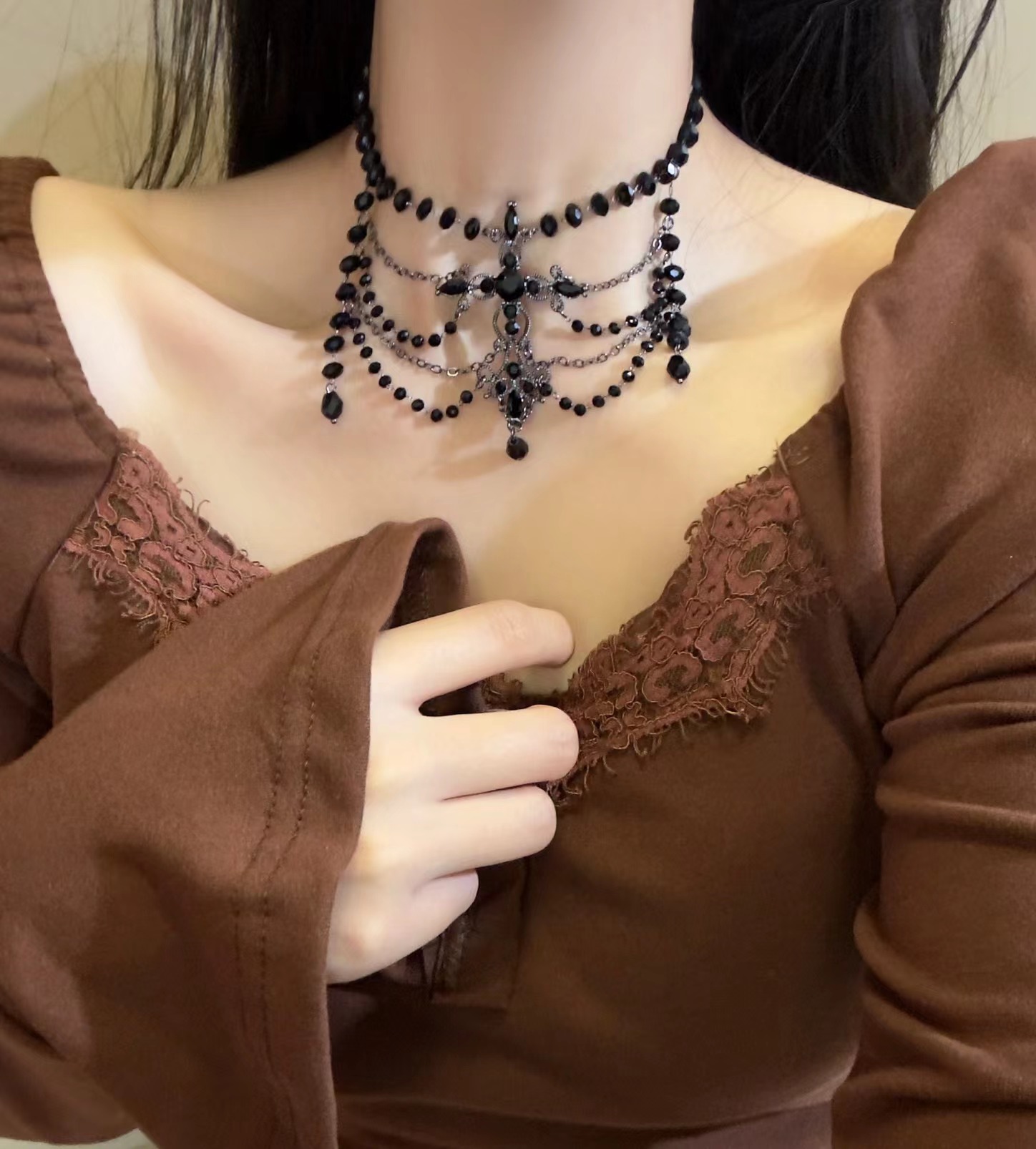 Medieval knight Gothic hand-woven black crystal beaded court retro stacking choker