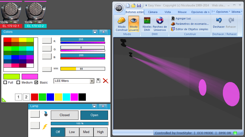 Esta Librería SSL2 está optimizada para trabajar con Magic 3d Easy View. Es decir para ver una representación 3D de las secuencias que estemos realizando con Freestyler, QLC+ o cualquier otro soft que se conecte con Magic 3d.