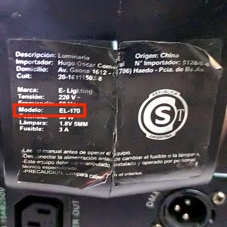 * Verifique que coincidan estos canales: 1 Pan, 2 Tilt, 5 Dimmer, 10 Blanco, 6 Strobo.