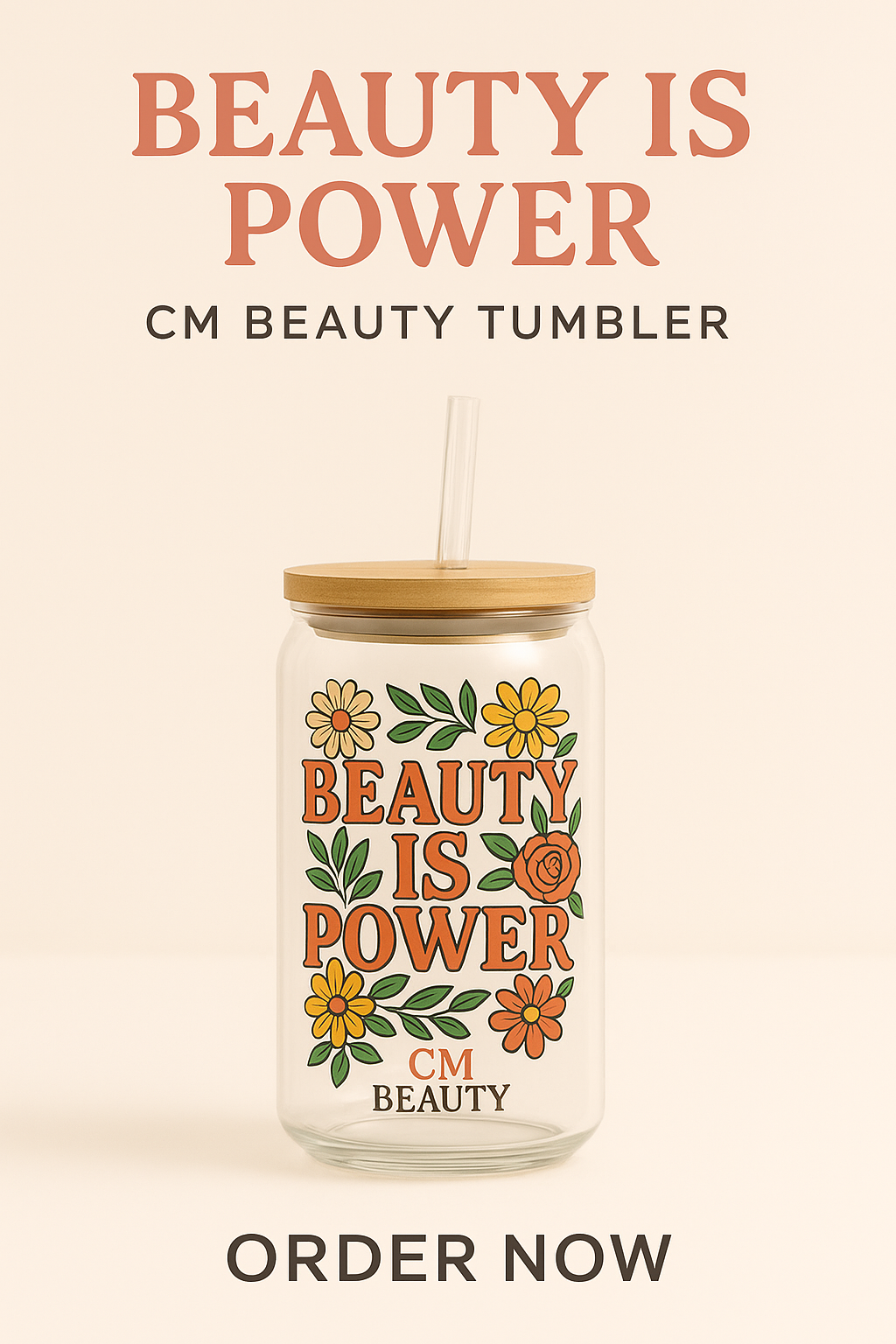 CM Beauty “Beauty Is Power” Glass Tumbler