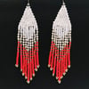 Cercei eleganti lungi tip franjuri, din margele rosii, albe si aurii