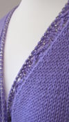 This pattern is worked from the bottom up. The ribbing is worked in the round, and then the body of the garment is worked flat, with an overlap at the front. Increases form the foundation of the overlap so no sewing is required. The edging is knitted on after.