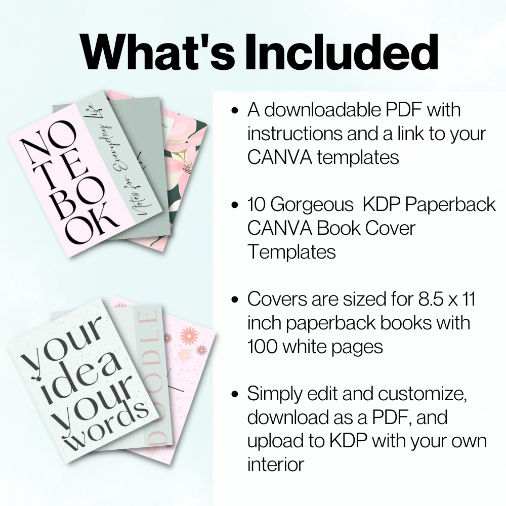 EZCover Canva Pack: 10 Gorgeous Time-Saving KDP Cover Templates (Sage & Pink)