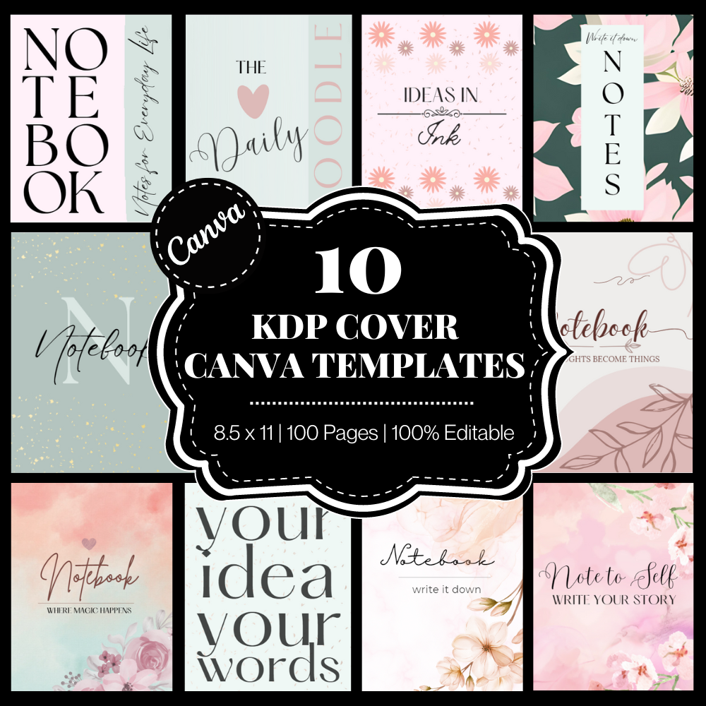 Get 10 beautiful Amazon KDP Book cover templates that you can personalize and make your own in a free Canva account.