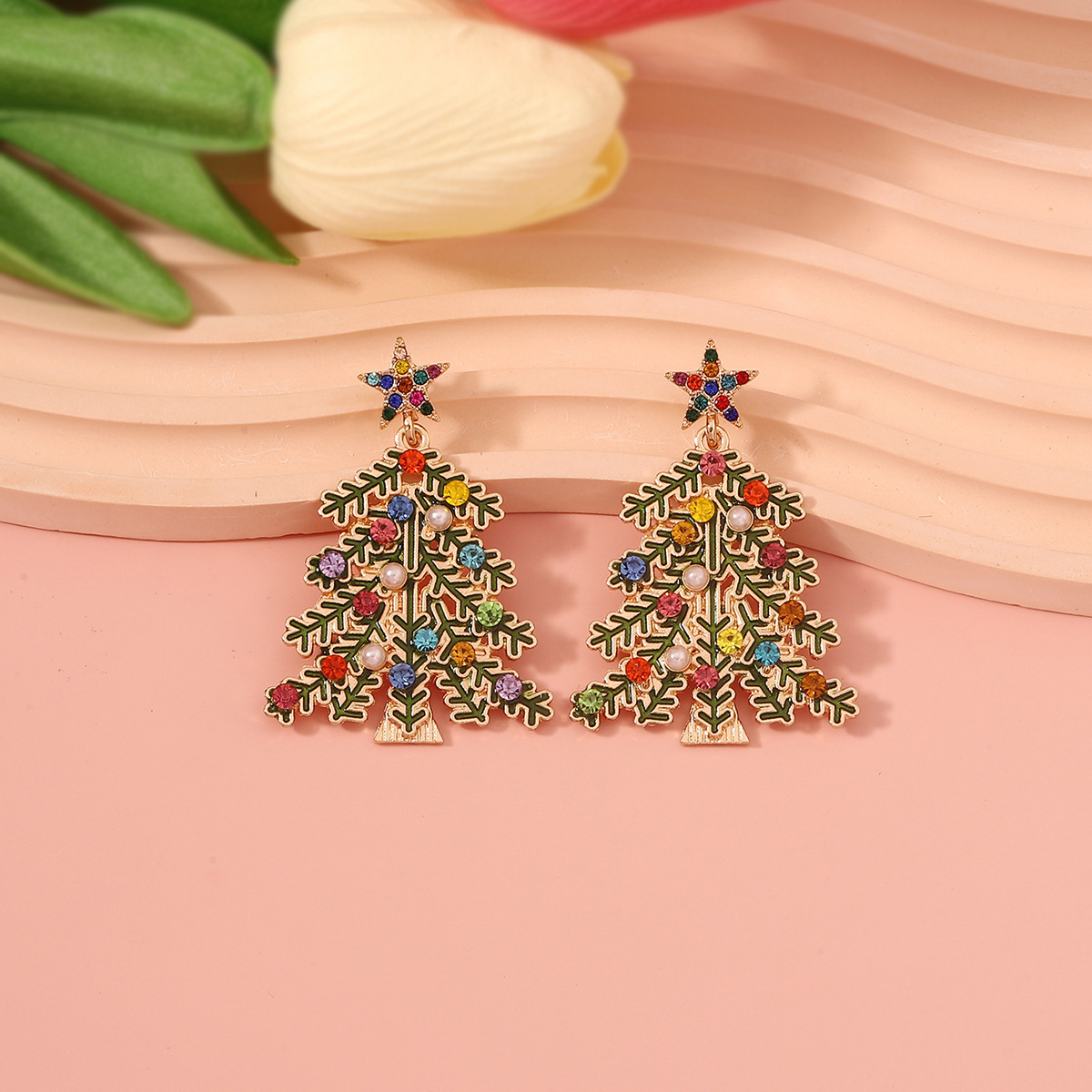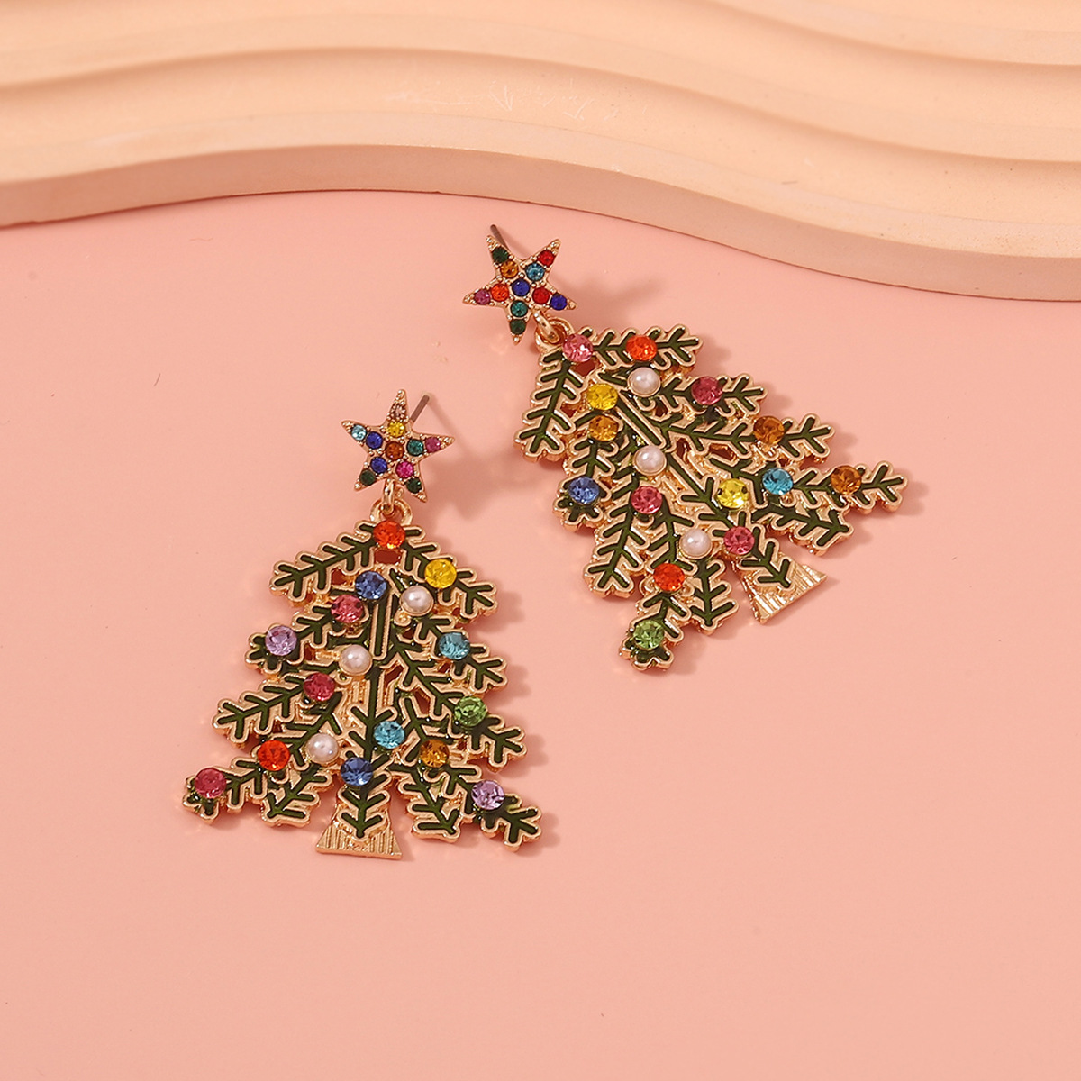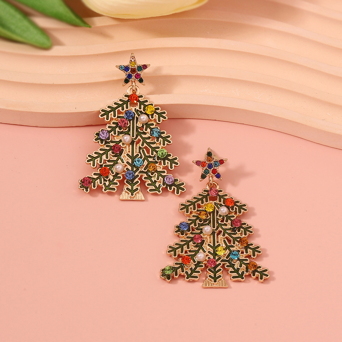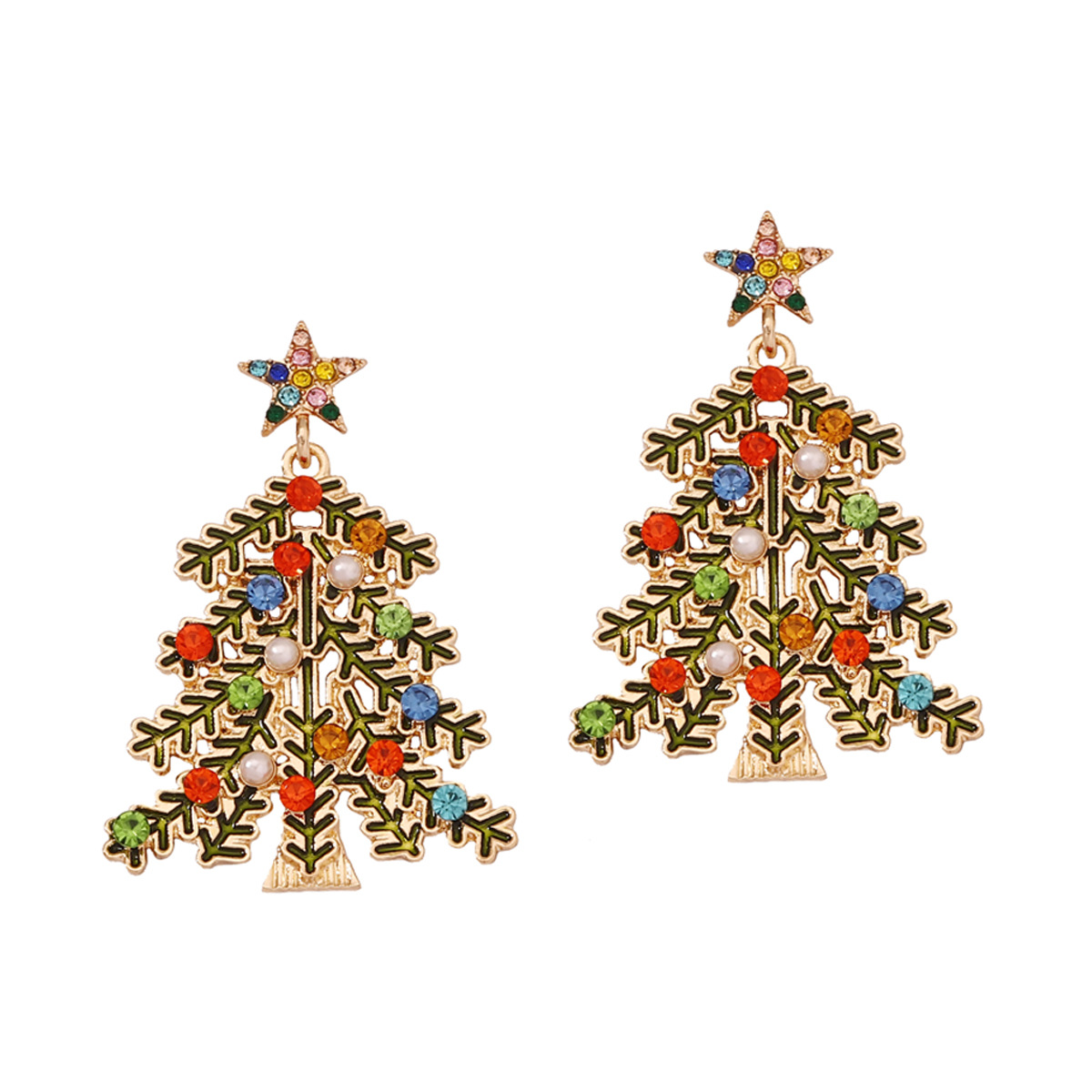 Vintage luxury style alloy Christmas tree snowflake colored rhinestones earrings