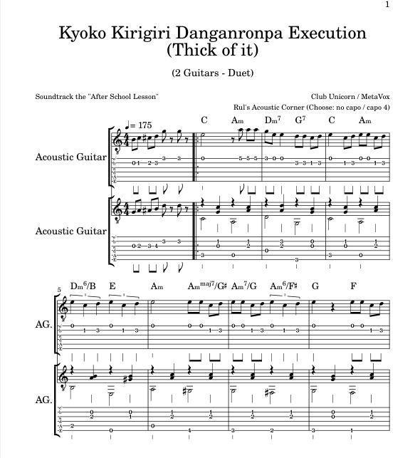 How To Play Kyoko Kirigiri Danganronpa Execution (Thick of it) | 2 Guitars Duet Tabs Chords Notes PDF Audio MP3