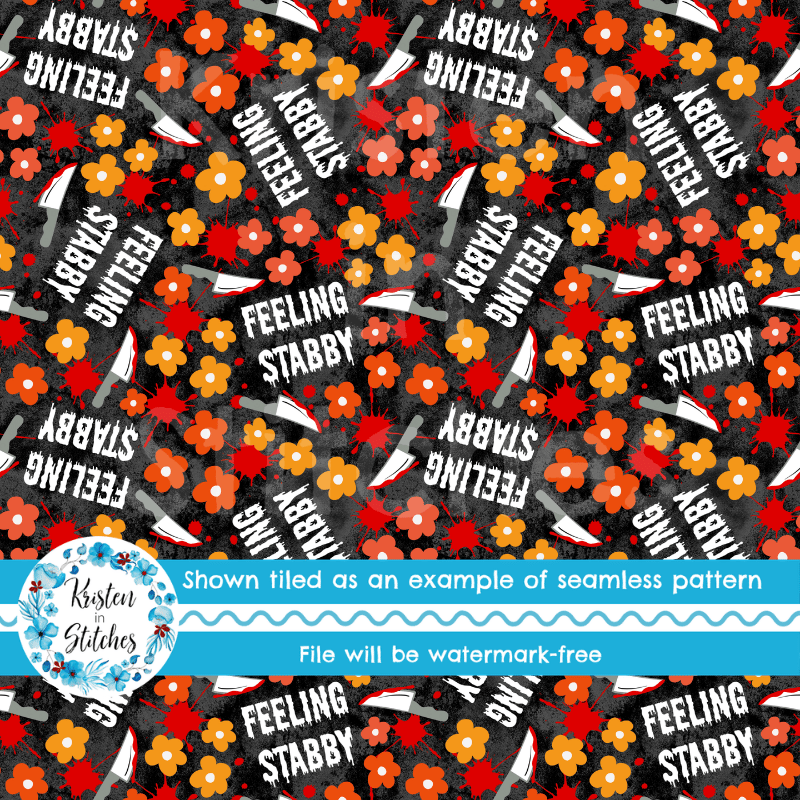 Feeling Stabby Seamless Pattern, Sarcastic Moody Humor