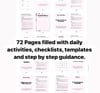 A total of 72 pages filled with daily activities , templates , checklists and step by step guidance.