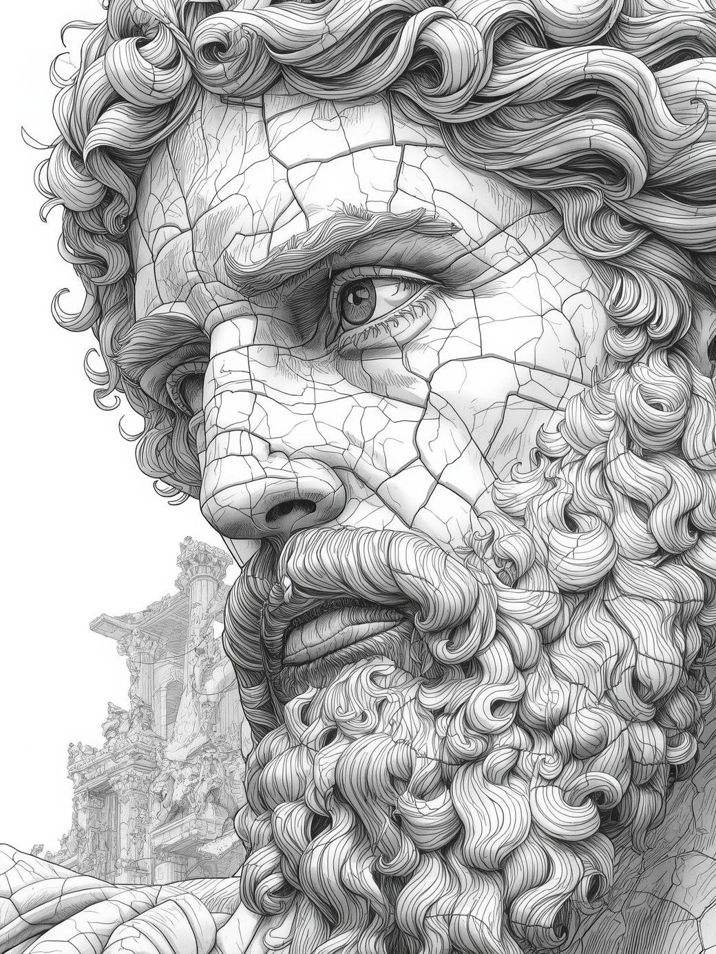 - Ancient Sculpture: Illustrations capturing the volume and grace of marble masterpieces.