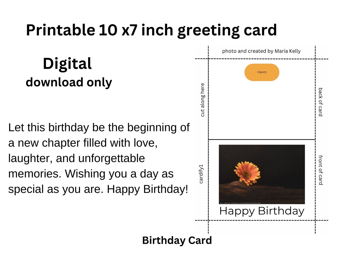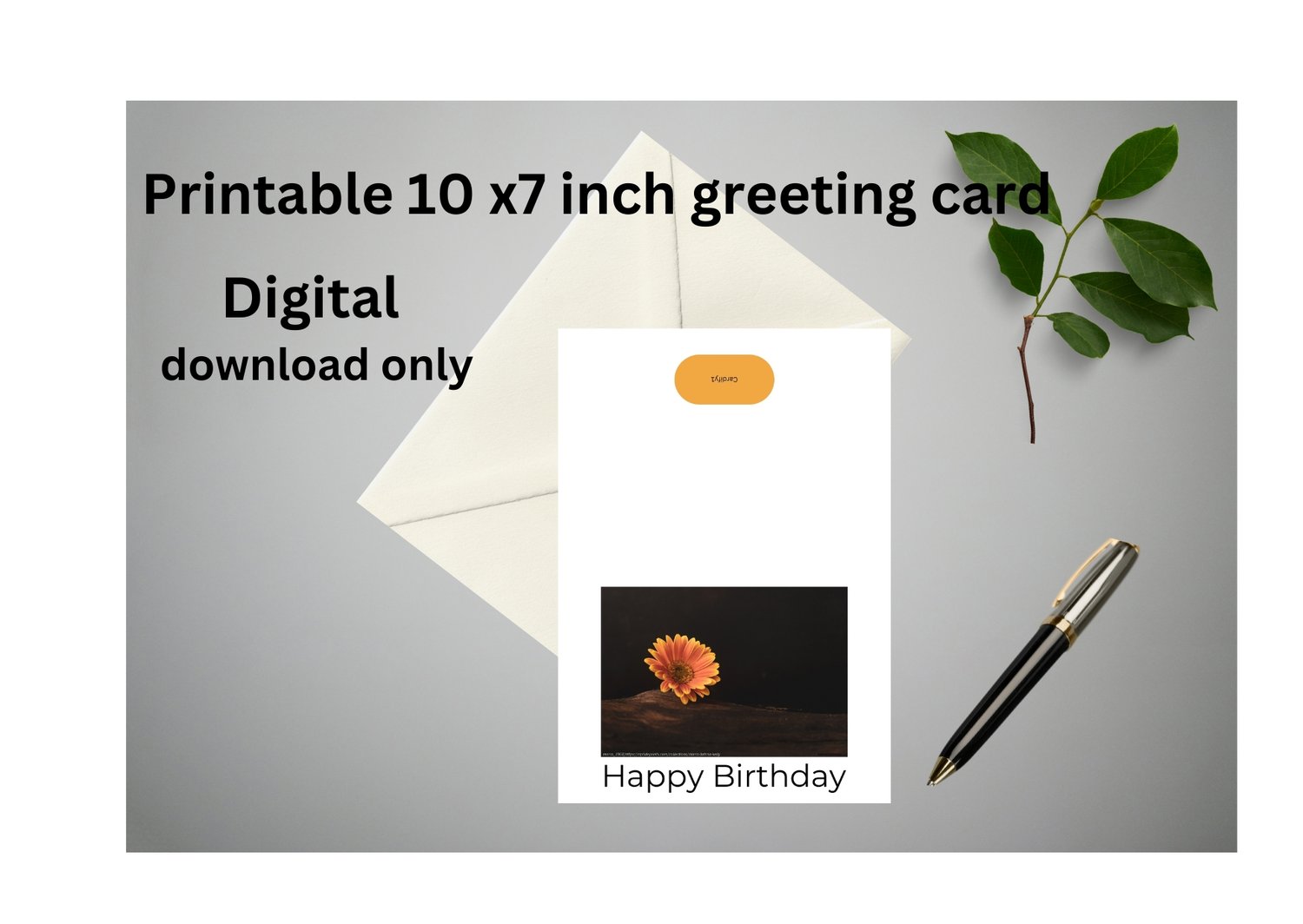 Welcome to our collection of digital birthday cards! This orange flower digital download birthday card is the perfect way to send well wishes to your loved ones on their special day.