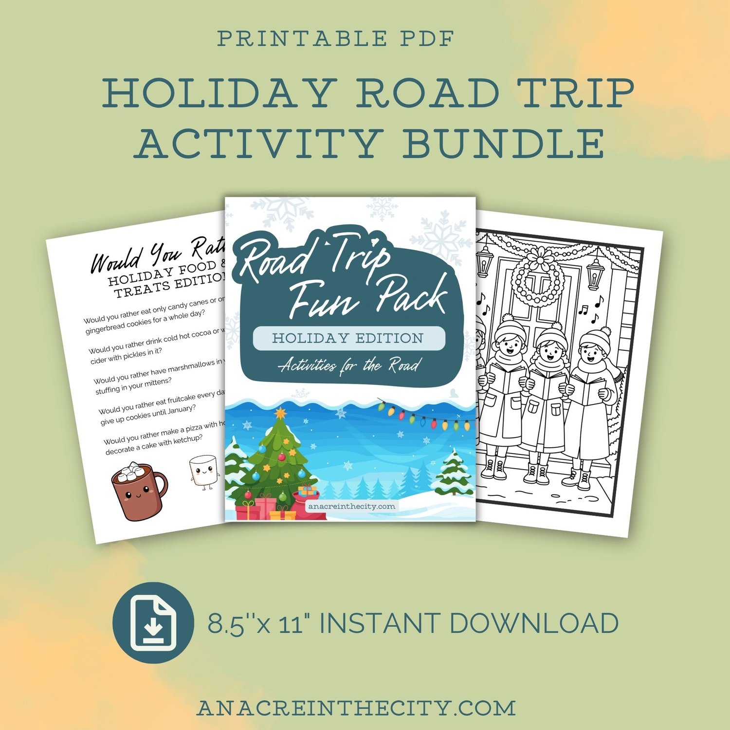 Headed over the river and through the woods this holiday season? Keep the kids entertained (and the “Are we there yet?” to a minimum) with this Holiday Road Trip Activity Bundle — a 20-page printable collection packed with fun, festive, and screen-free activities!