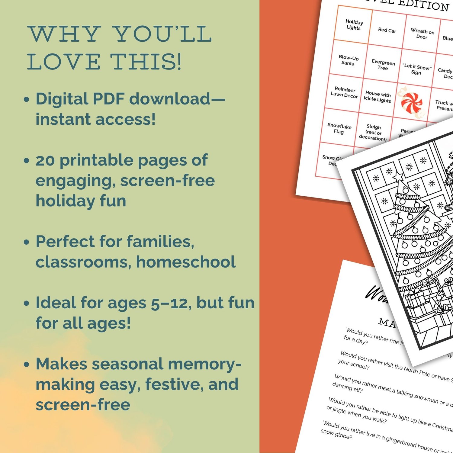 Perfect for road trips, plane rides, winter break, classroom parties, or family gatherings, these pages are easy to print, fun to use, and sure to create unforgettable holiday memories.