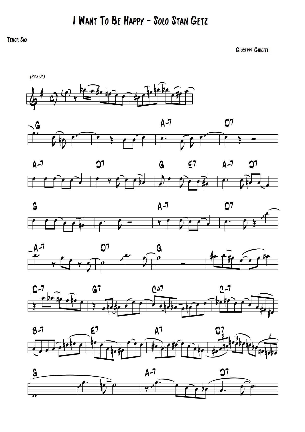 I Want To Be Happy · Stan Getz Solo Transcription Tenor Sax (Bb)