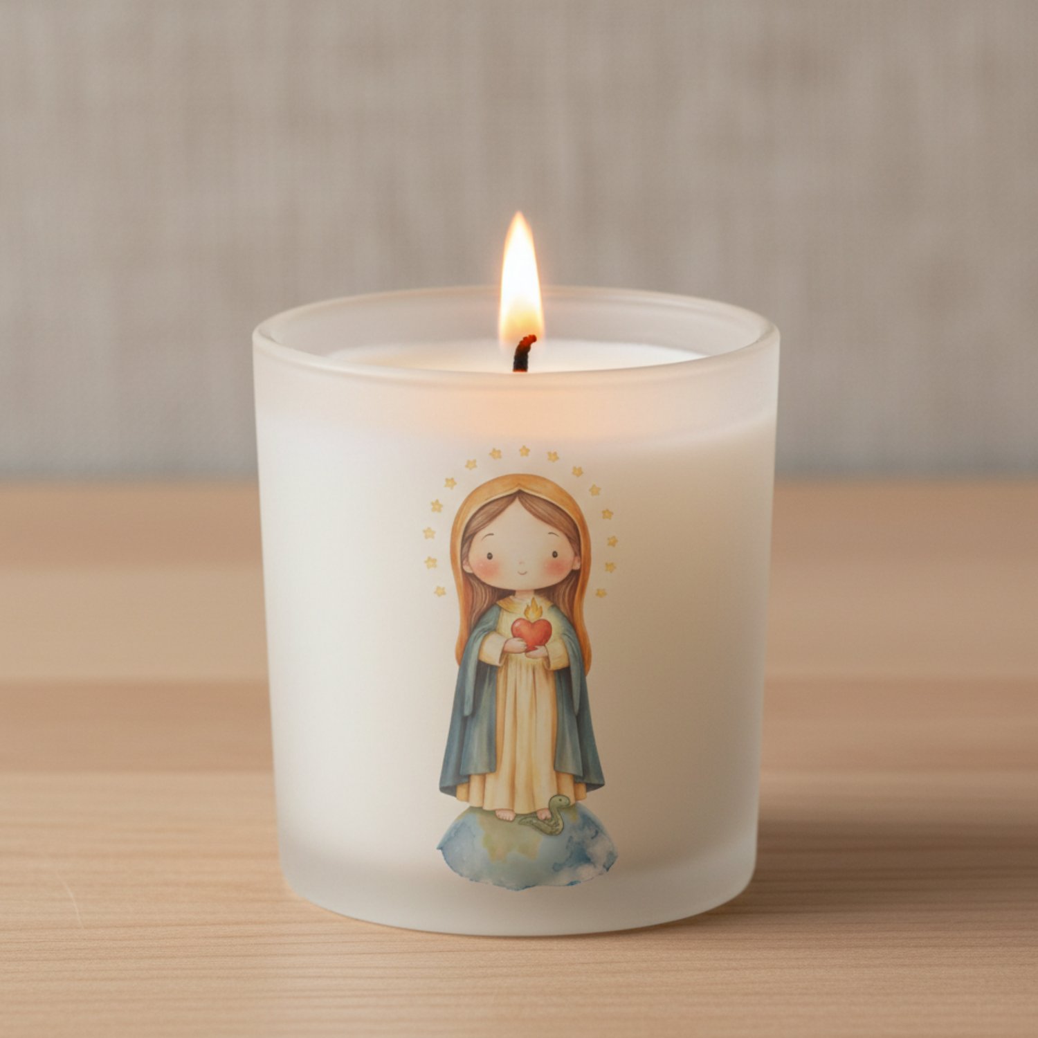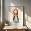 Crea recuerdos inolvidables con la ternura de la Virgen de la Llama de Amor en acuarela. 🎨✨