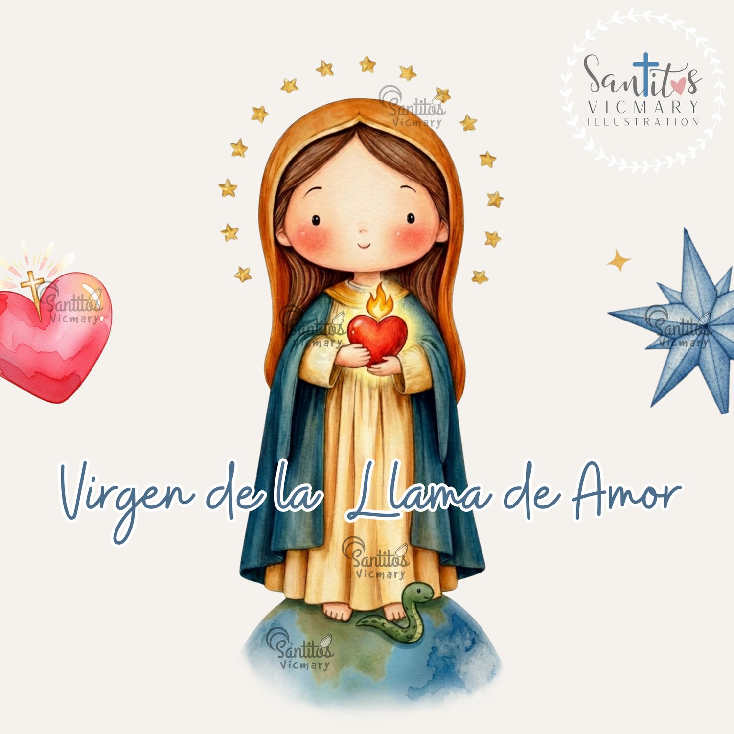 1 Ilustración Principal: Virgen de la Llama de Amor estilo acuarela.