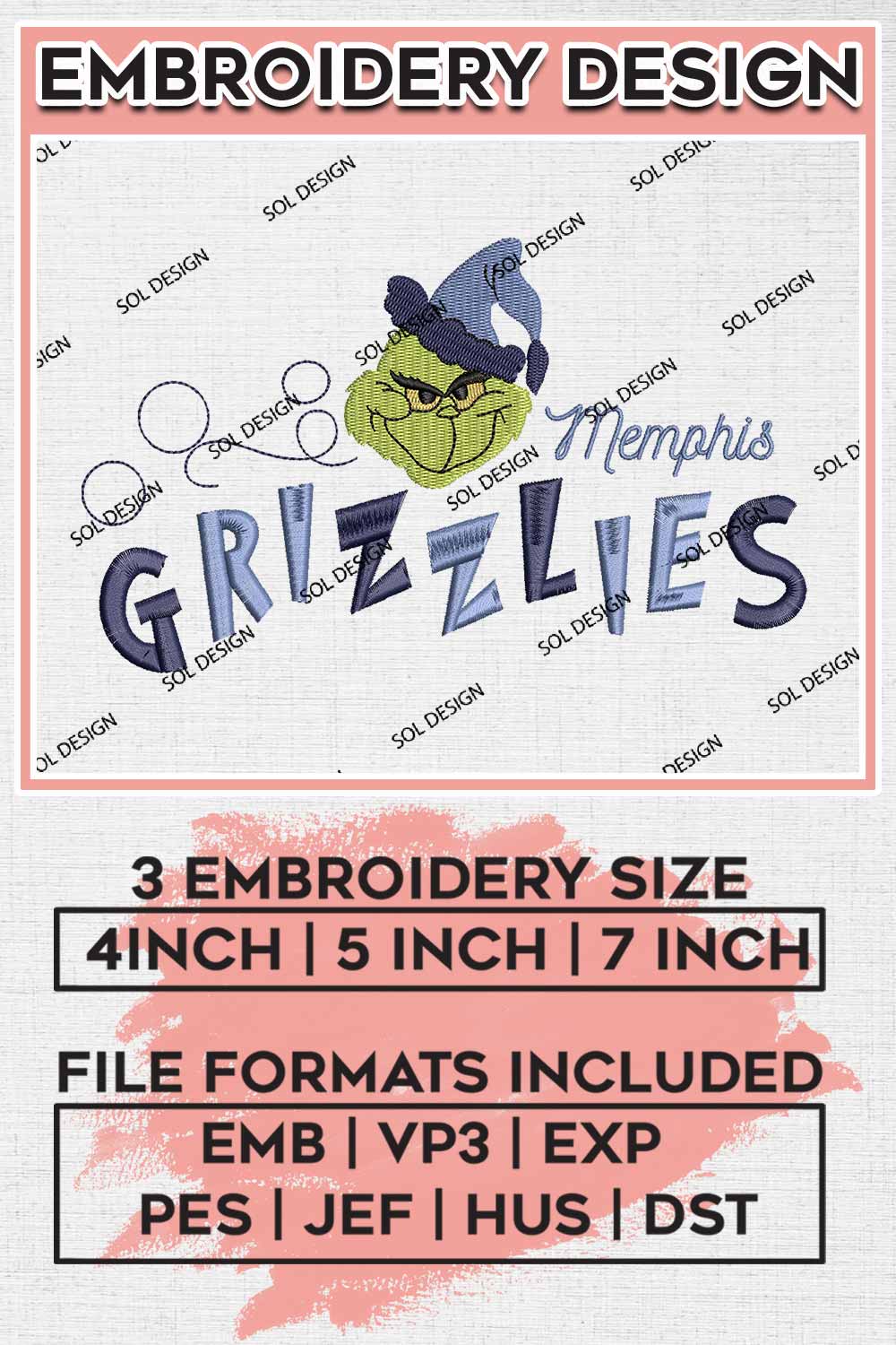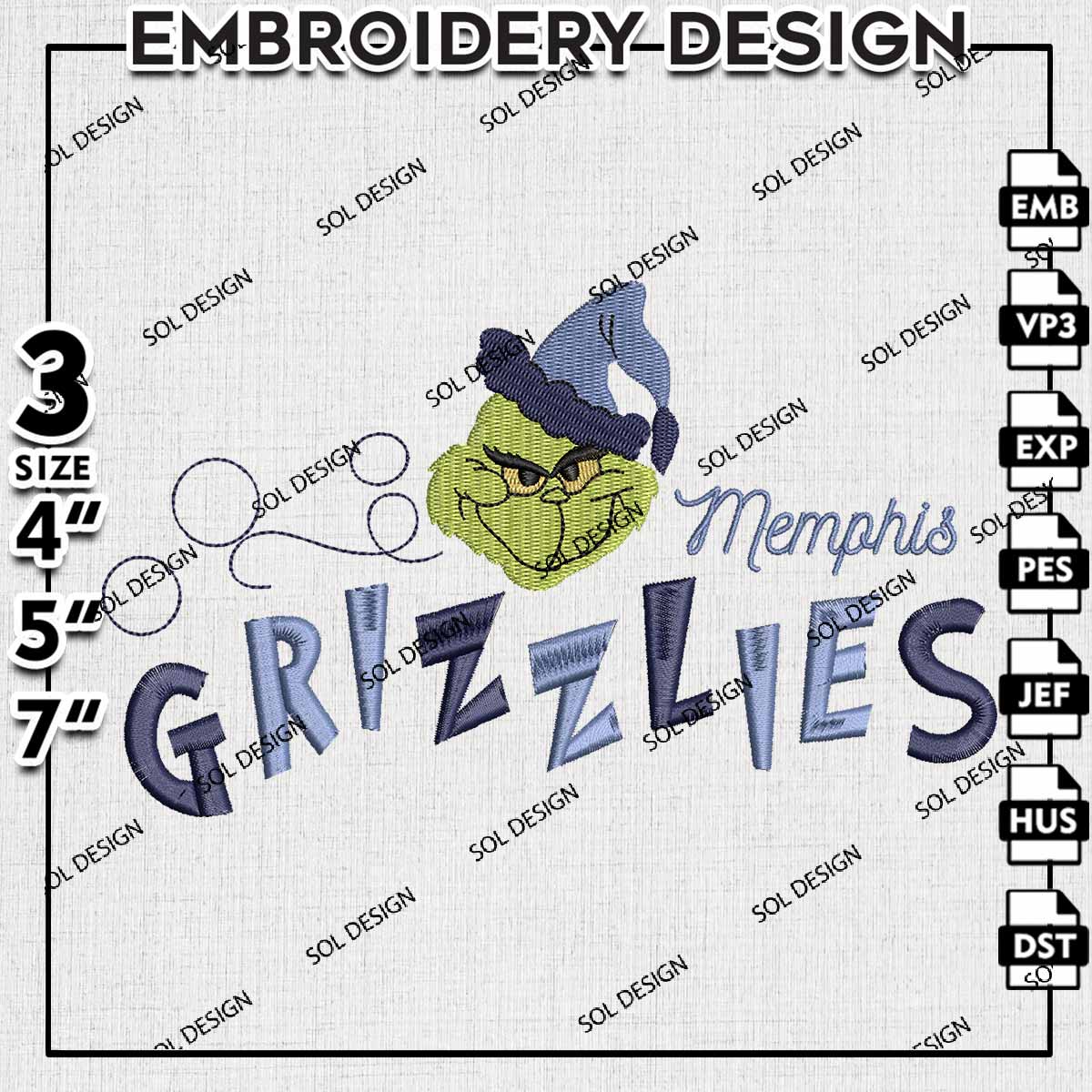 Christmas Grinch Face x Memphis Grizzlies NBA Basketball Team Embroidery Designs, Grinch Embroidery Files, NBA Grizzlies Basketball Team Logo Embroidery, Merry Christmas Machine Embroidery Design, Digital Download