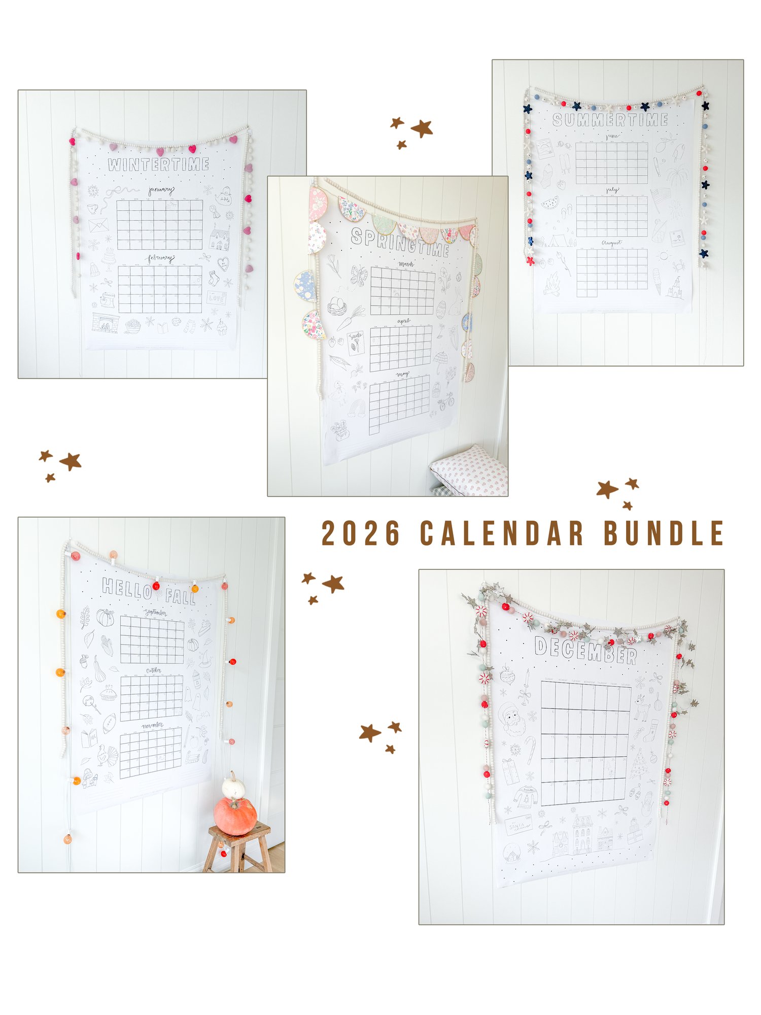 This 2026 Calendar Bundle includes 5 wall calendars: Winter, Spring, Summer, Fall, and December.