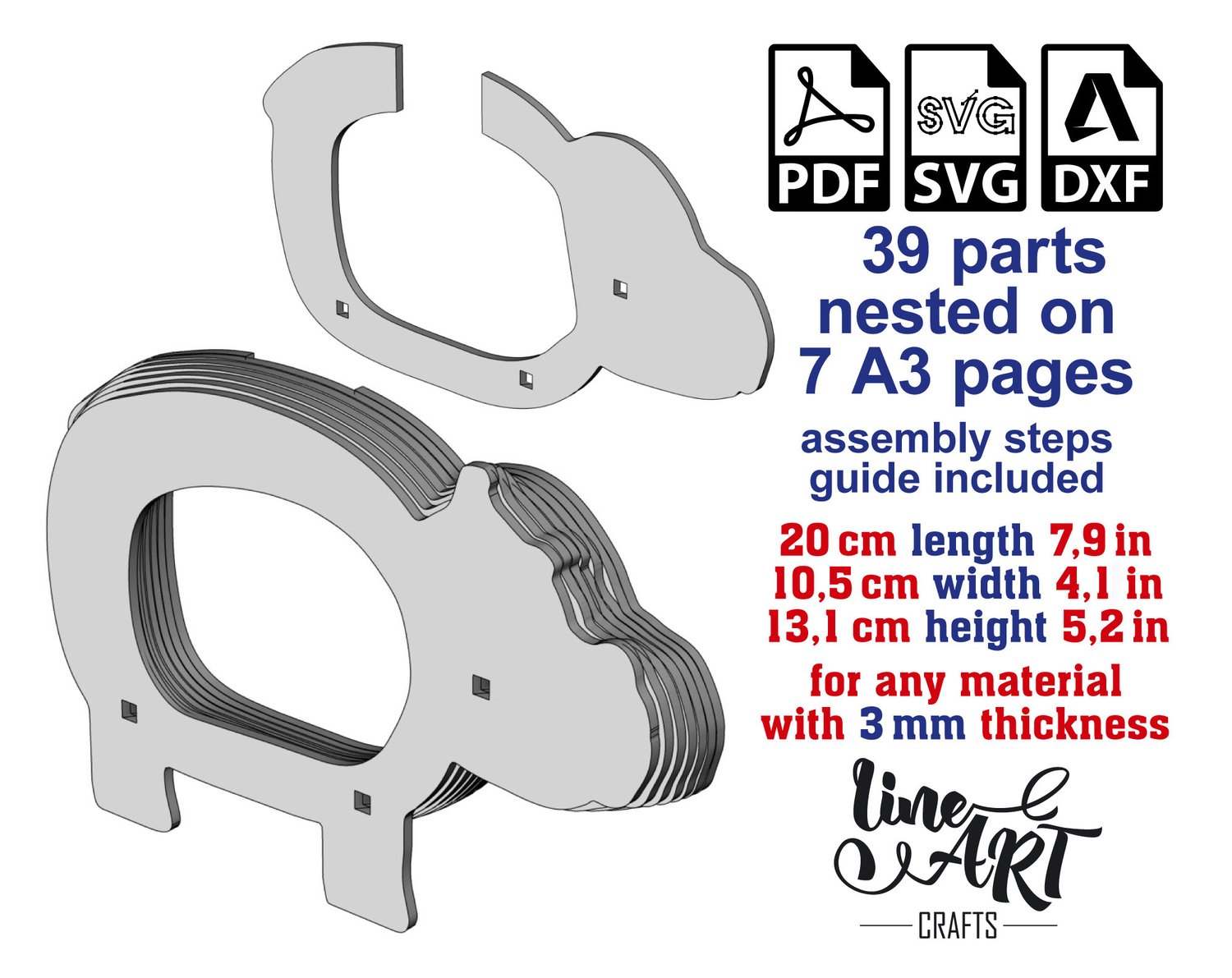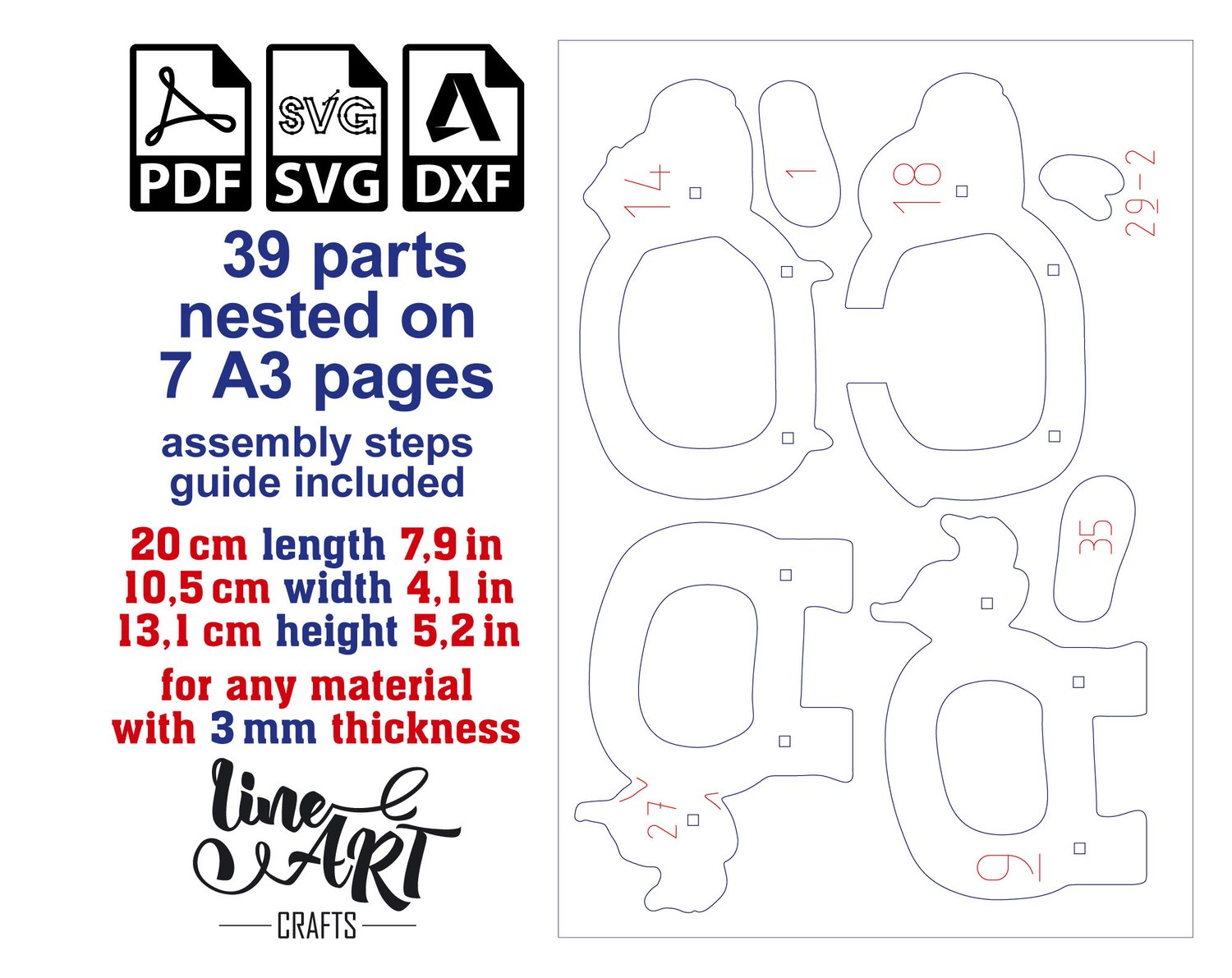 This is not a physical product! This is a digital download of a vector template (plan drawings) file to make sculpture yourself out of any material with 3 mm thickness (like plywood, mdf, acrylic, cardboard, etc.) with Laser cutter, CNC machine or Scroll saw. Glue is required.