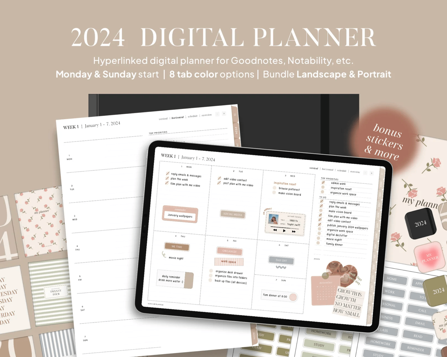 Can't decide which version to get? Get access to all planner options & bonuses with this bundle that contains both Landscape & Portrait orientations of the new 2024 Digital Planners.