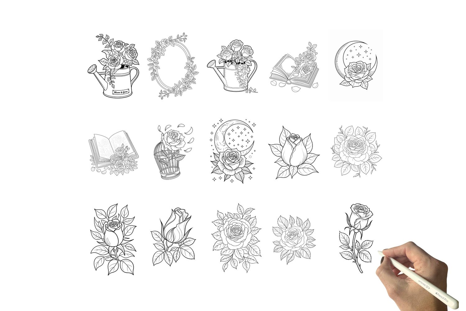 Explore Your Creativity with These Glorious Rose Templates & digi stamps pngs!