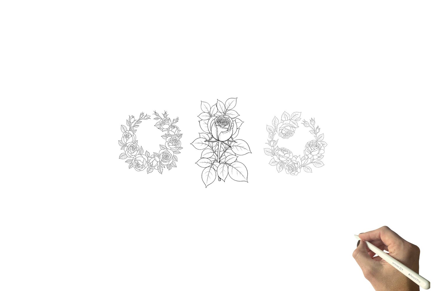 Roses watercolor sketch outlines, Rose Watercolor Templates, flower digi stamps, Cardmaking, Procreate PNG, digital stamps png, Rose, Roses