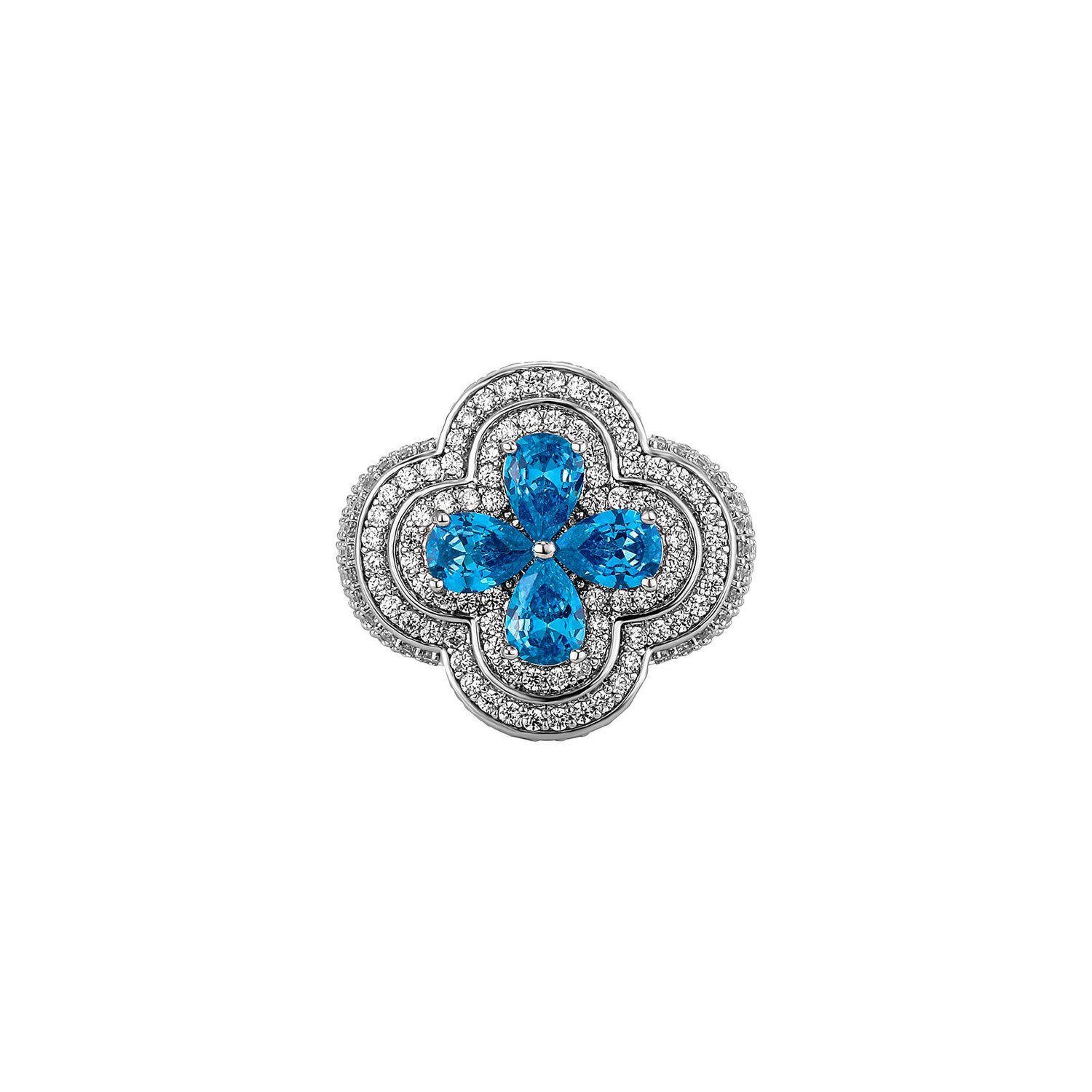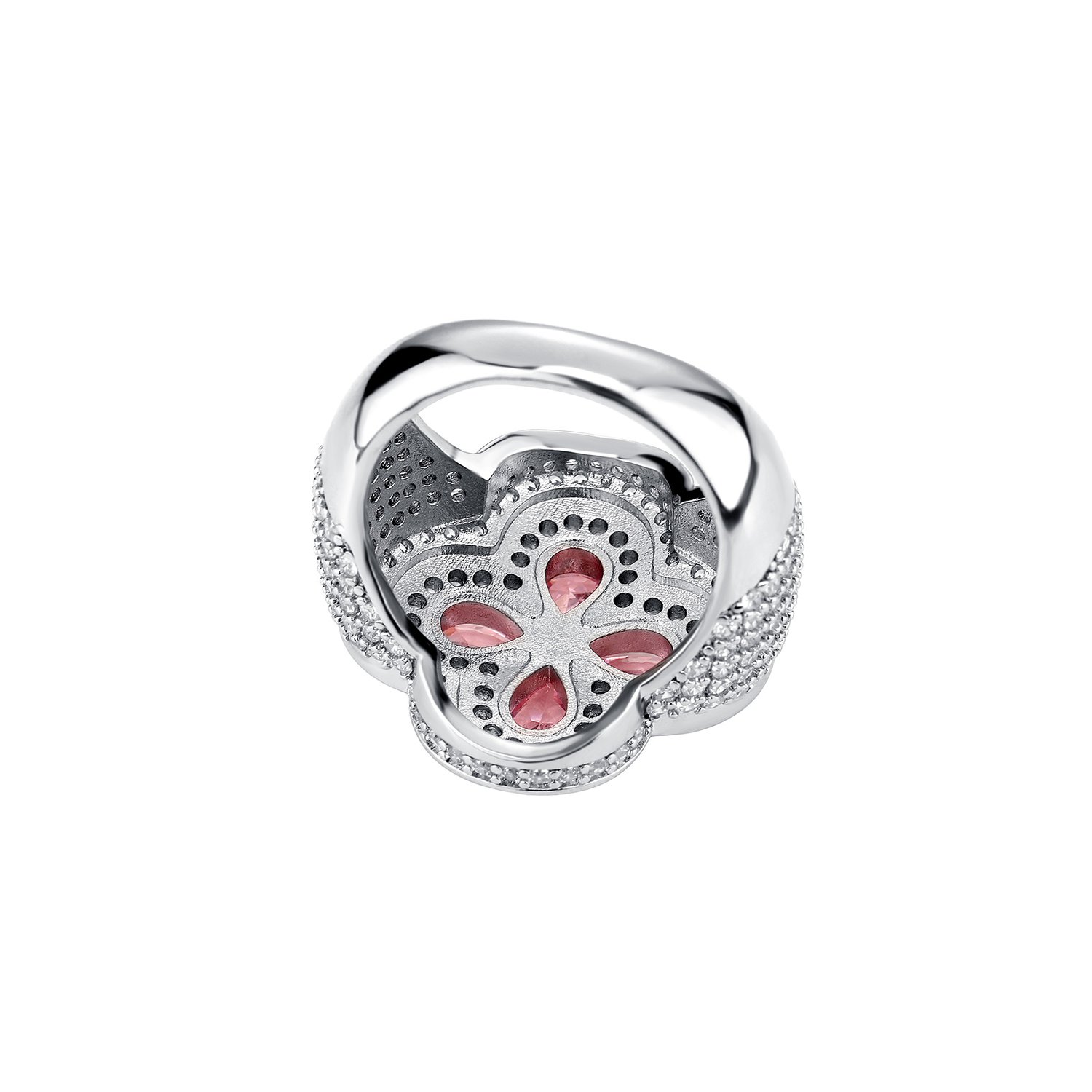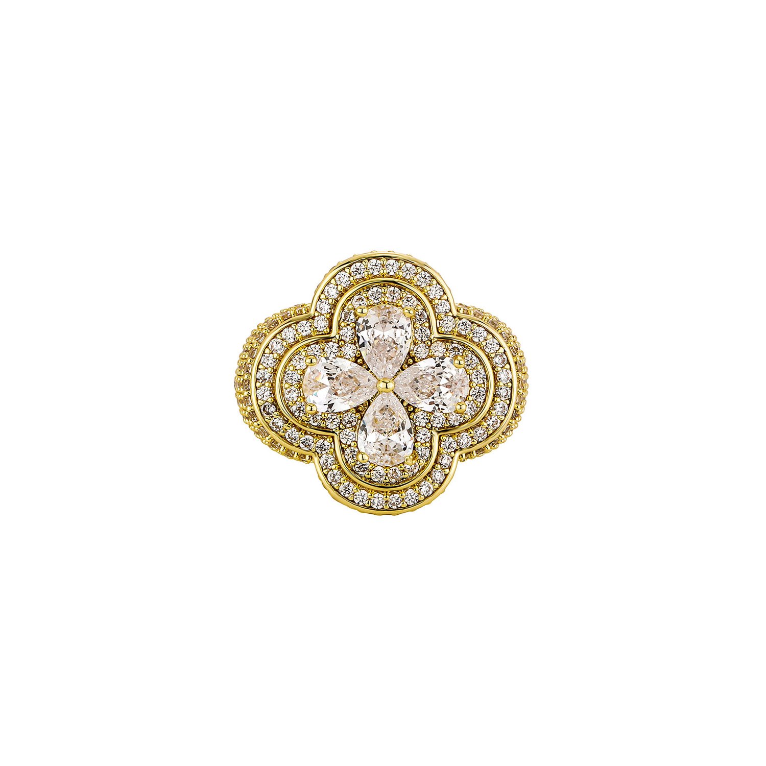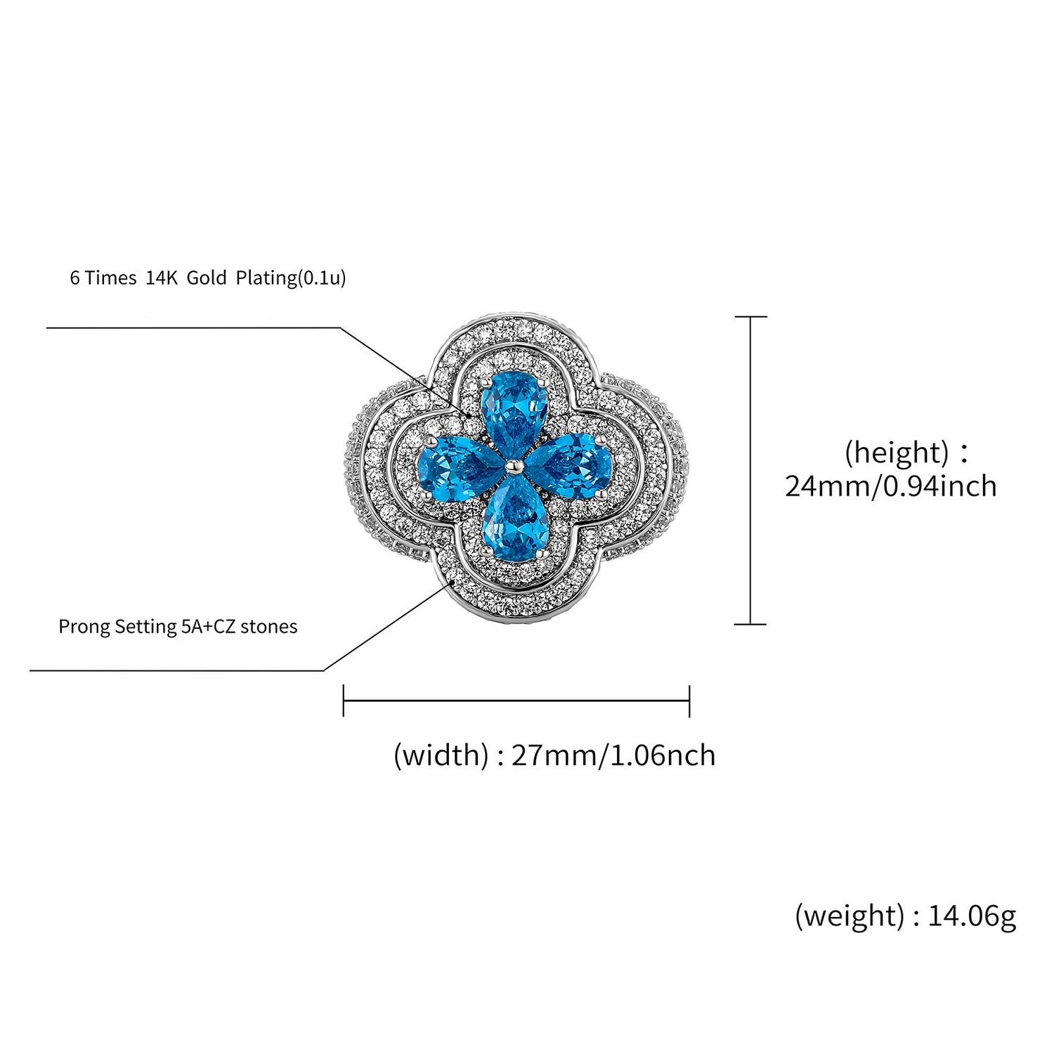 Iced Out Colorful Four Leaf Flower Ring Bling Micro Paved Cubic Zirconia