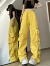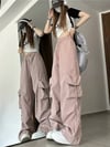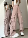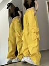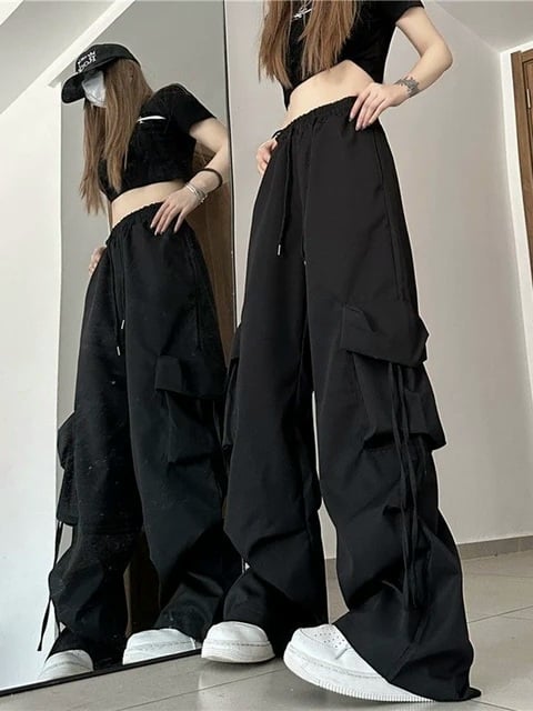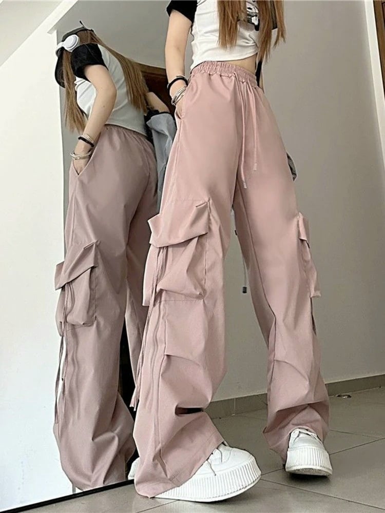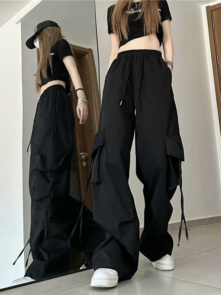Women y2k Streetwear Hip Hop Loose Casual Trousers American High Waist Big Pockets Lace Up Fashion Lady Pants