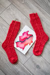 • Yarn – 100g Sock Yarn (approx. 365-400m / 400-440 yds) Sample knit in Birch Hollow Fibers Yarns on the Sojourner Sock base in the A Hint Of Rouge Colourway (60/30/10 US Non Superwash Merino/NY State Romney/Nylon).