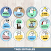 - 12 TAGS Circulares 6cm (redimensionables y editables)