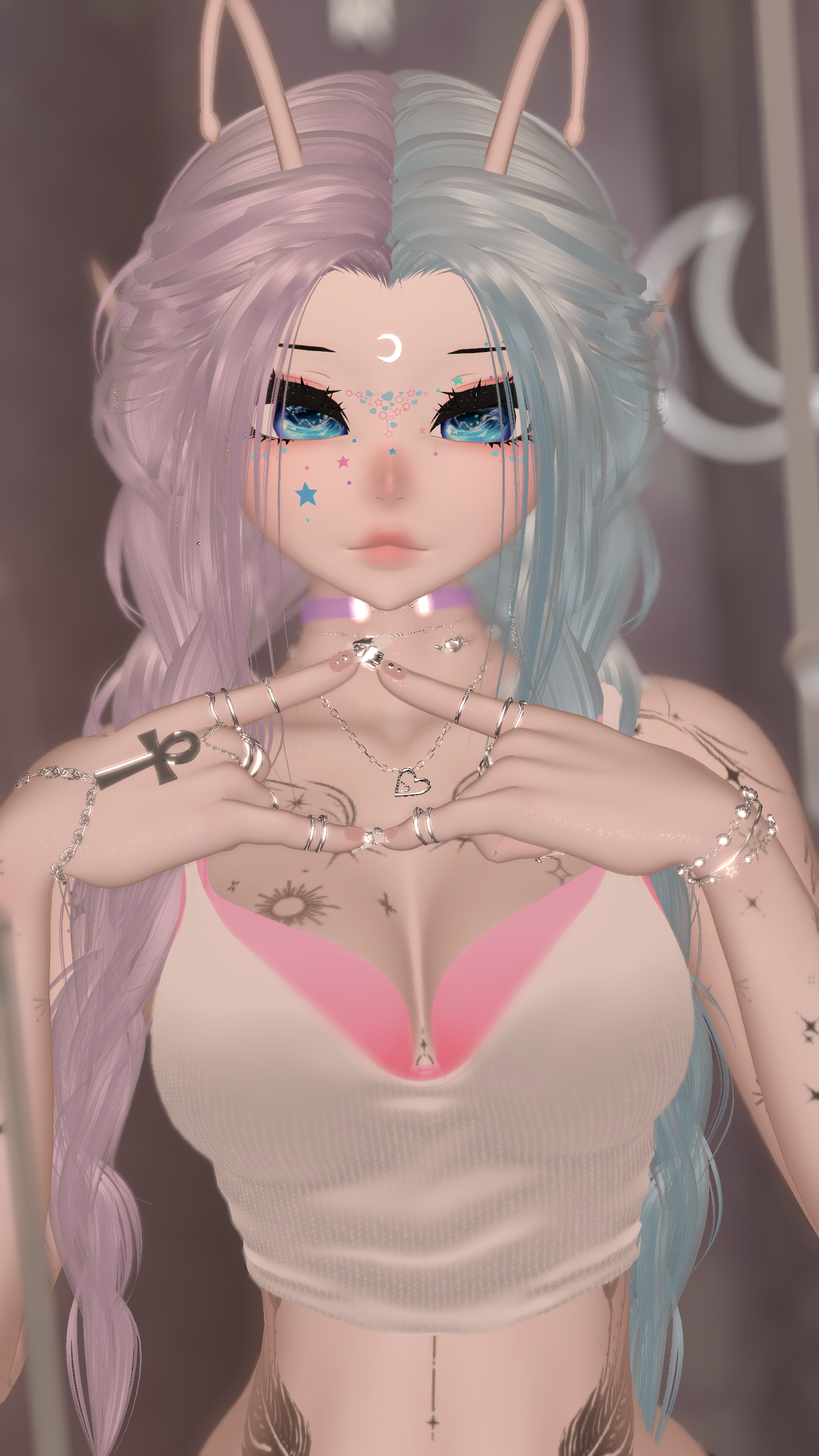 ╰┈➤Acc : Backpack, L arm bracelet, R hand jewelry, R arm bracelet, L hand bracelet, Rings, Garters, Socks, Arm/Leg warmers, Face stickers, Face stickers 2, Thigh lace, Heels, Head moon, Necklace, Earings