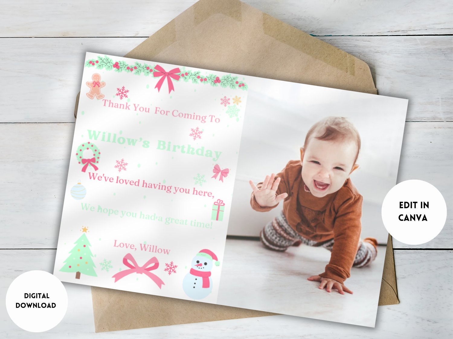 Oh What Fun It Is To Be One First Birthday 'Happy Birthday' Banner | Christmas 1st Bday Garland | Canva Template | Printable Stationery