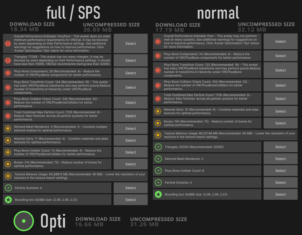 - versions: 1 without lights/no SPS, 1 with lights/SPS, 1 green/opti version