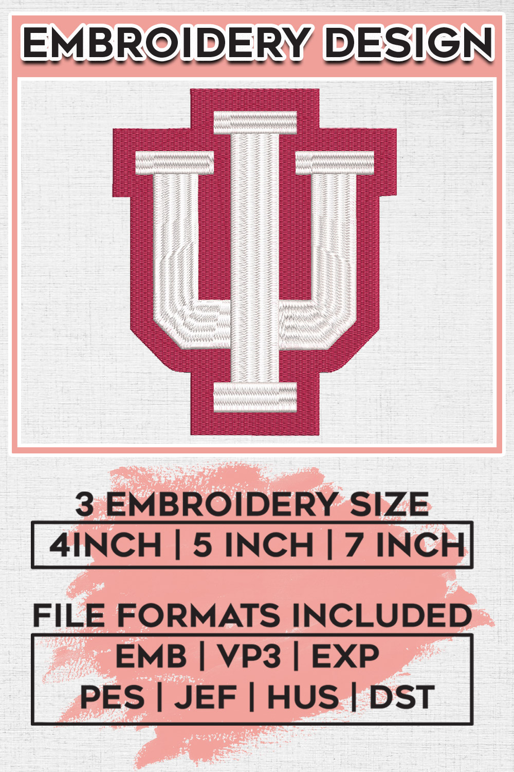 Indiana Hoosiers Football Team Logo Embroidery Files, NCAA Indiana Hoosiers Team Embroidery, NCAA College Football Teams, Indiana Hoosiers Team Emroidery, 3 sizes, Machine embroidery designs, Digital Down
