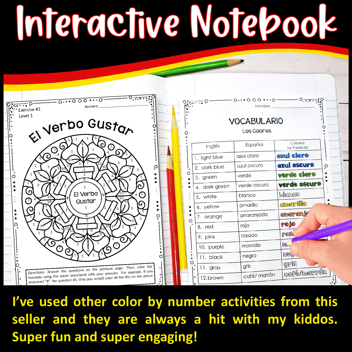 🎨 Spanish Color by Number | Gustar & Verbs Like Gustar