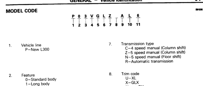 Especificaciones Generales Mitsubishi L300 4WD (en inglés)