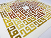 Plant-dyed paper, gold leaf and handcut card. Framed, 50x50 cm.