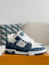 Imaginée par Virgil Abloh, cette sneaker LV Trainer emblématique est revisitée en denim Monogram et en cuir de veau grainé embossé Monogram pour la saison. Les couleurs et les matières contrastées soulignent le montage sophistiqué de ce modèle, qui s'inspire des sneakers de basket-ball vintage. Chaque paire nécessite sept heures de couture.