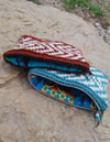 After learning the wedge weave style on a traditional Navajo loom, I was was inspired to create a similar knitting design. As I am always in need of places to safely store my small notions (yarn needles, stitch markers, scissors, etc.) I decided to create this pouch. It is knit in the round using Judy’s Magic cast on to create the bottom (a standard cast on can also be used). A zipper and lining is added with a simple backstitch and hand sewing. If you have never added a zipper to a knitting project, I challenge you to give it a shot!