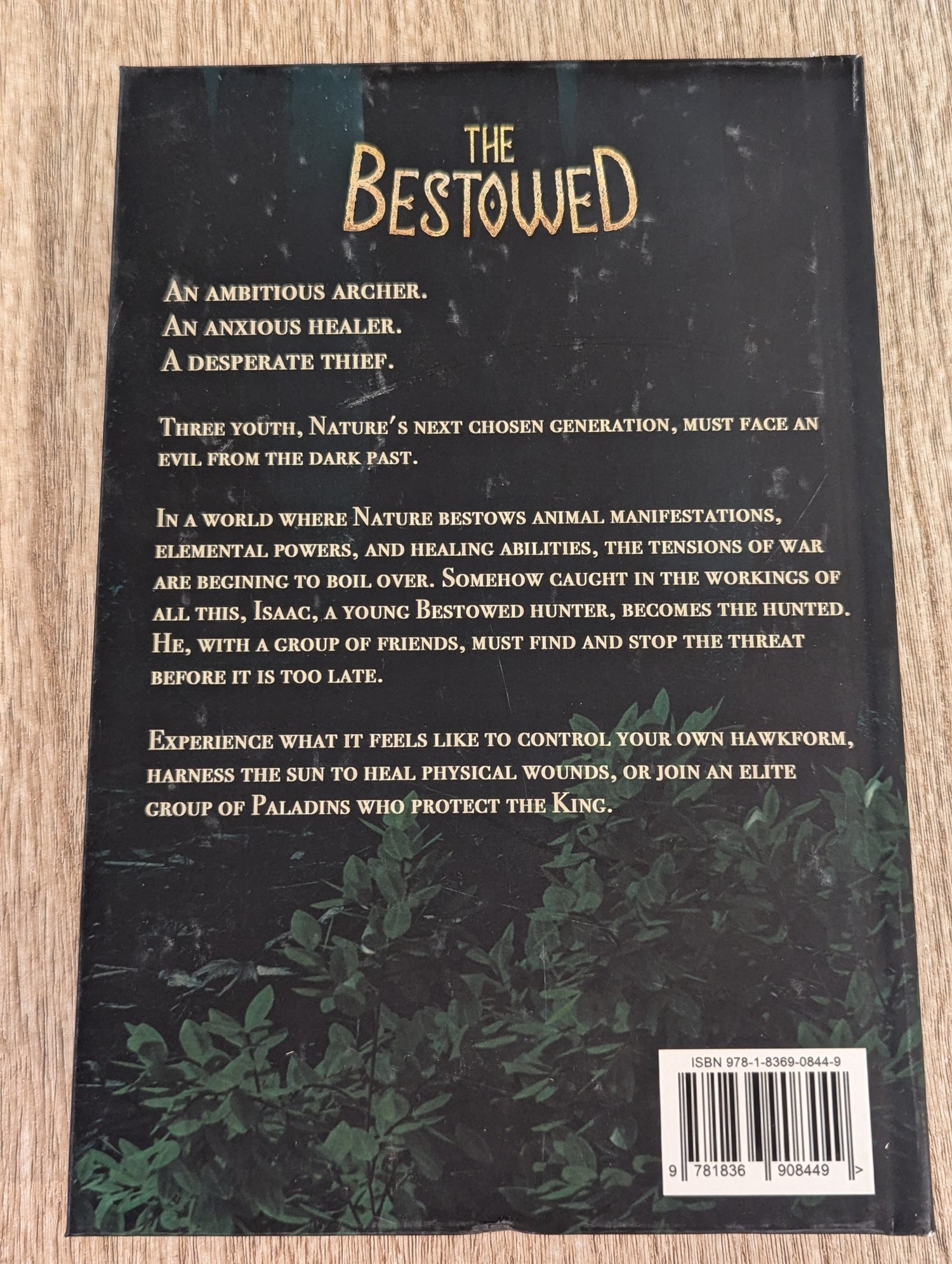 In an Arthurian world where Nature bestows animal manifestations, elemental powers, and healing abilities, the sinister plotting of several rogue Bestowed is nearing fruition and the tensions of war are beginning to boil over. Somehow caught in the workings of this plan, Isaac, a young Bestowed hunter, becomes the hunted. He, with a group of friends, must find and stop the threat before it is too late.