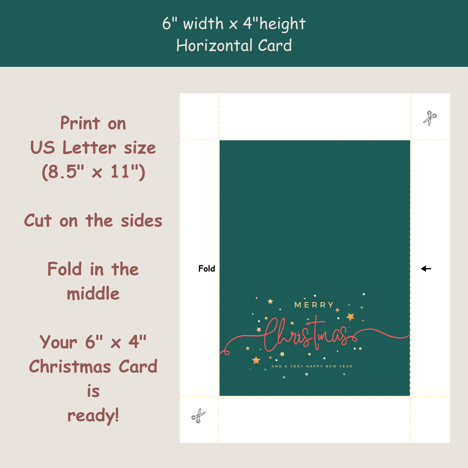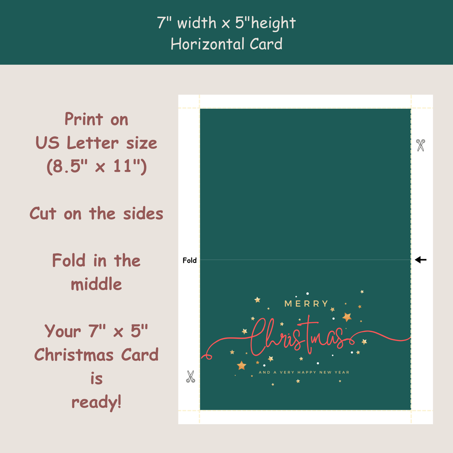 Send warm wishes with festive cheer and welcome the magic of the season with our "Stars and Snow" printable horizontal Christmas card – an enchanting collection of digital downloads that effortlessly capture the beauty of a winter wonderland. Perfect for hassle-free printing at home or through your favourite local print shop.