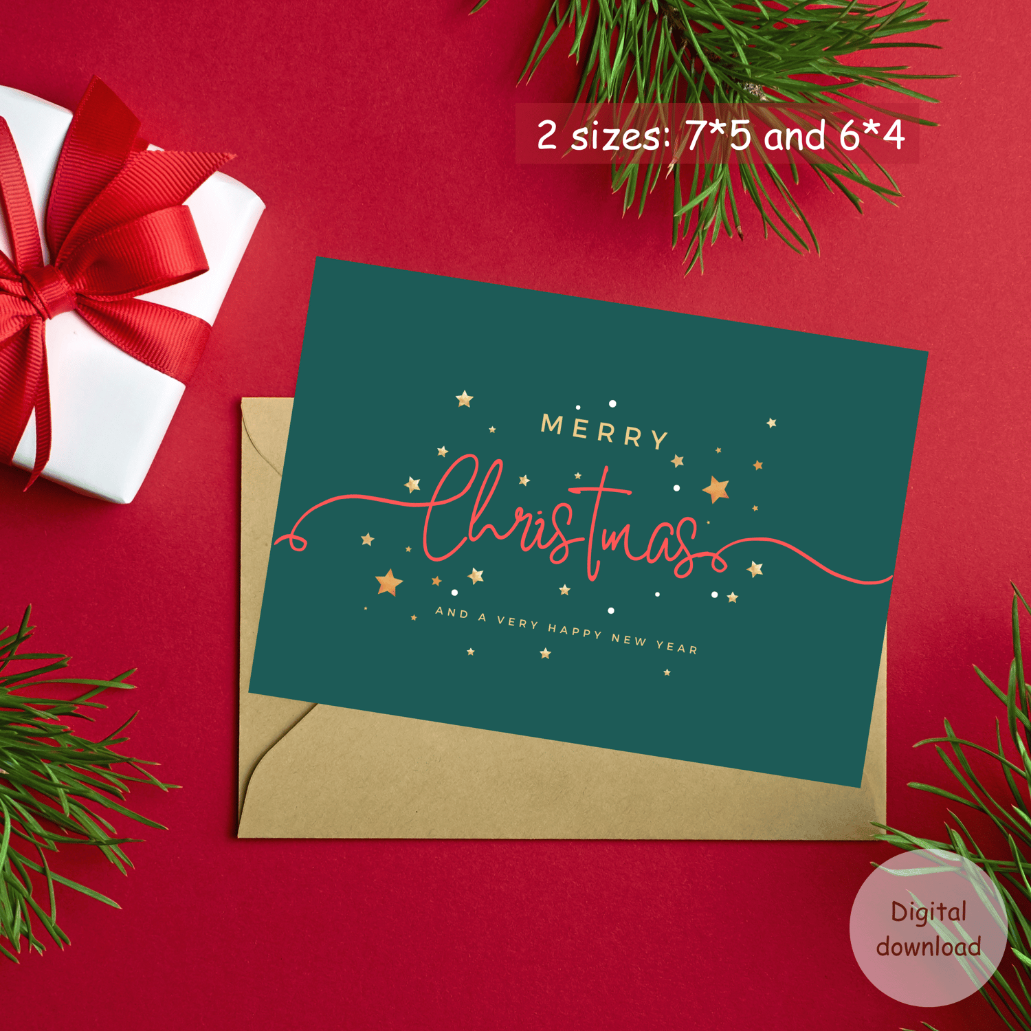Merry Christmas Printable Card - Digital download - 2 sizes