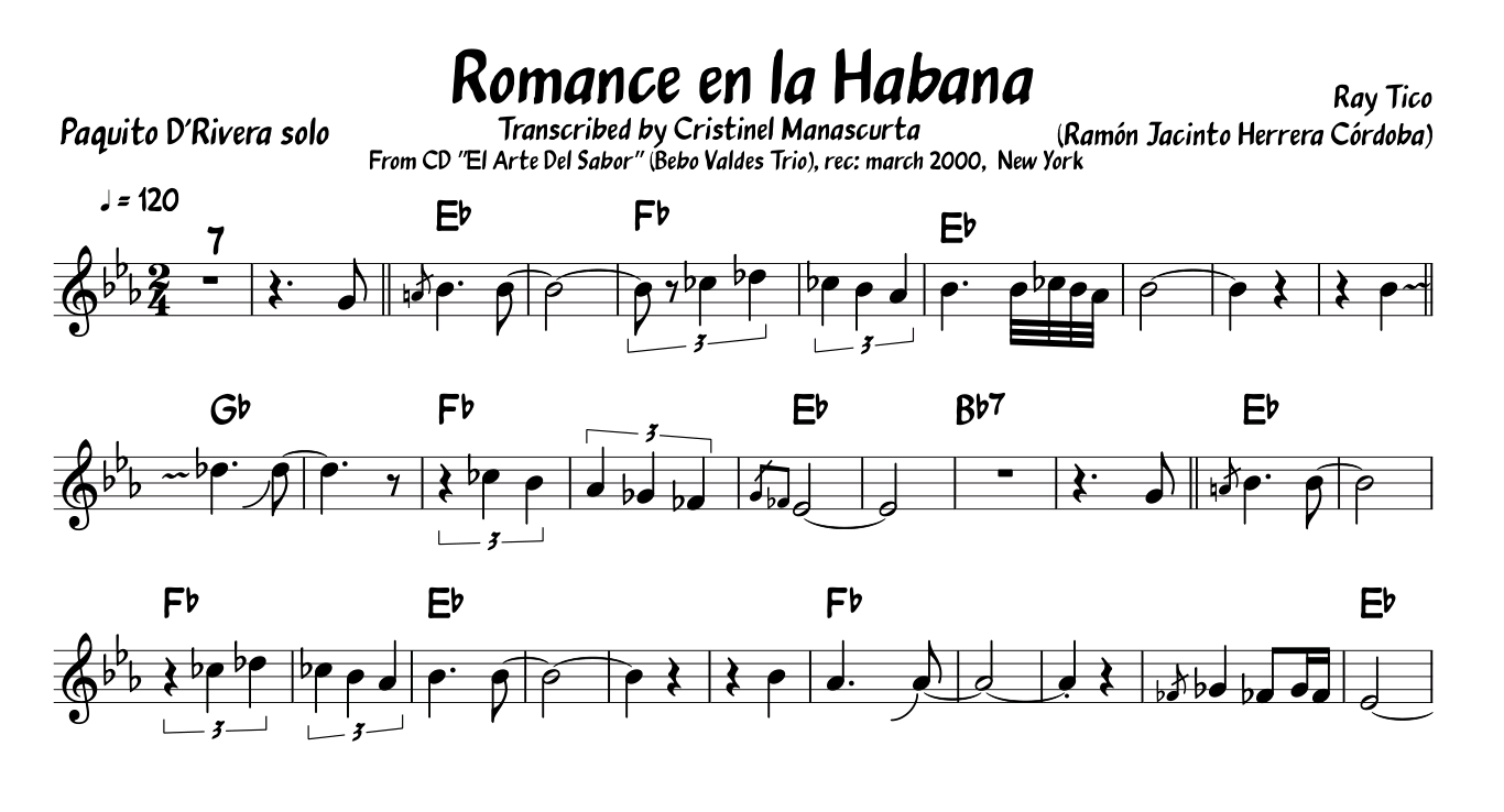 Paquito D'Rivera - Romance en la Habana, flute or piano