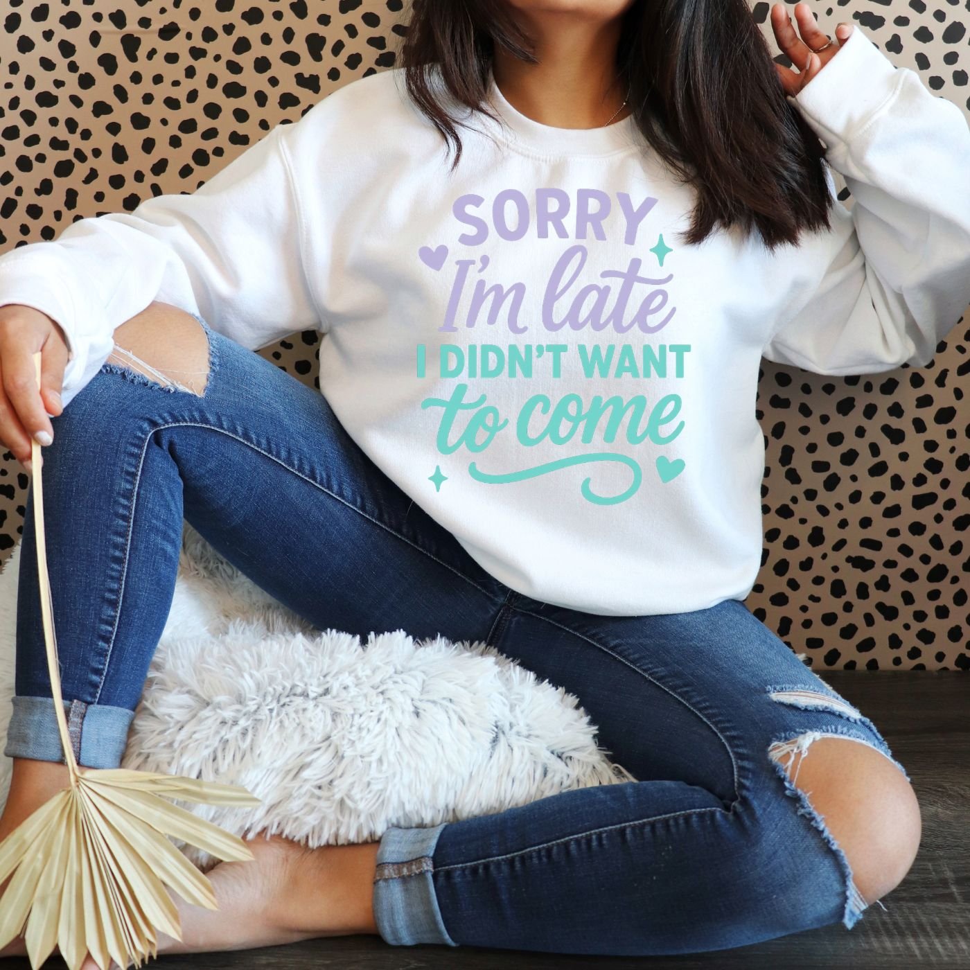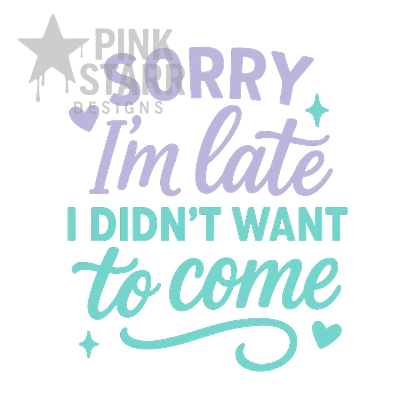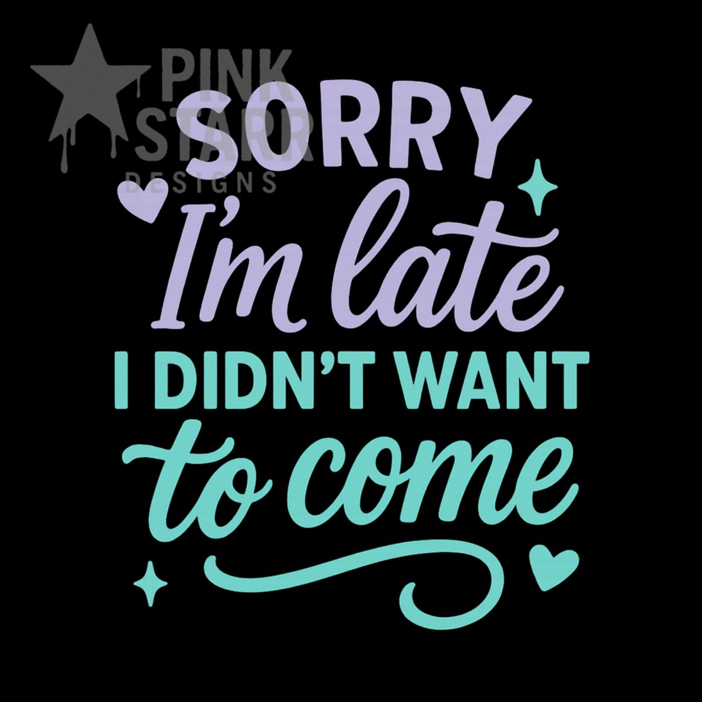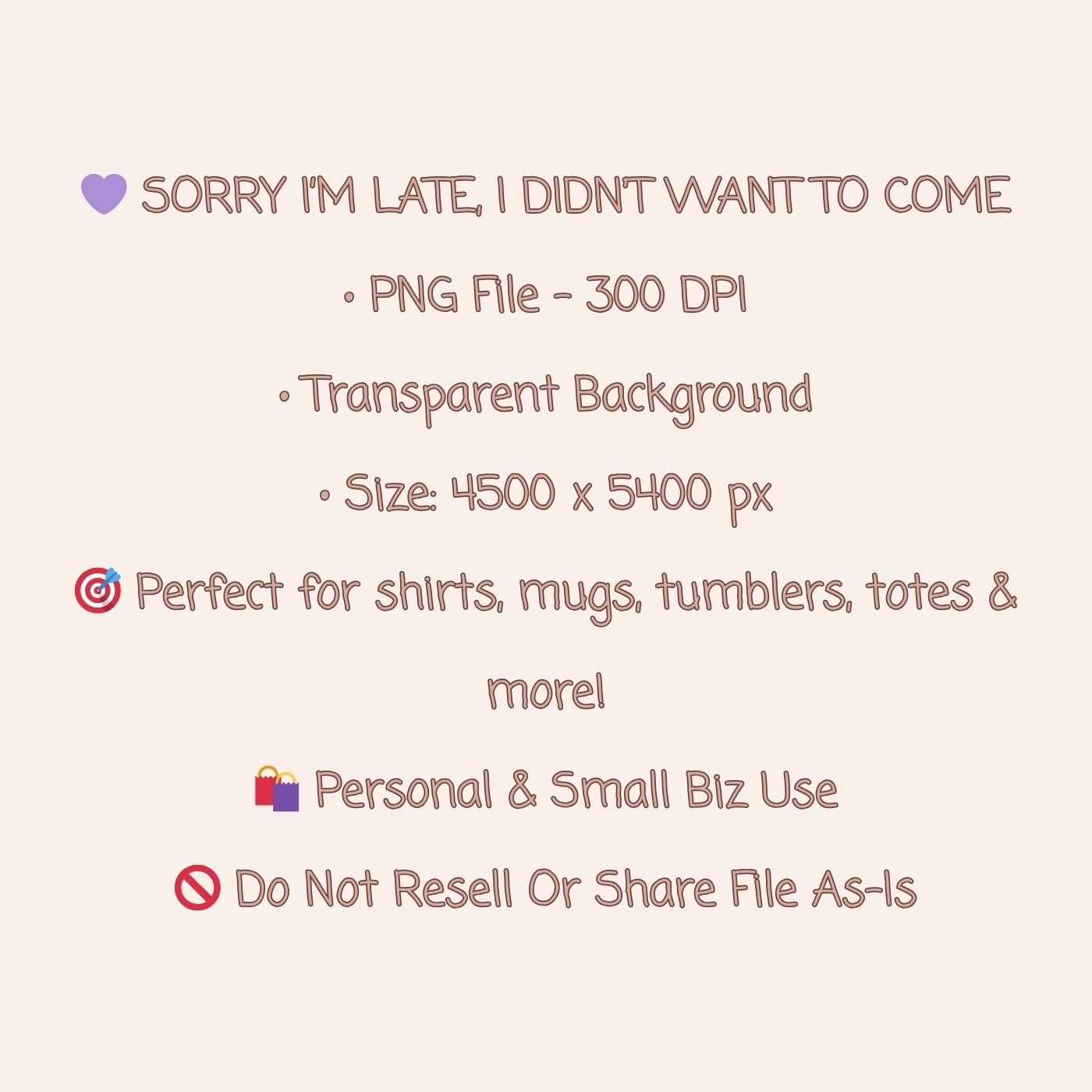 Sorry I’m Late I Didn’t Want to Come PNG, Funny Quote Sublimation Design, Sassy Shirt Digital Download, Cricut, Mugs, Tumblers, Transparent