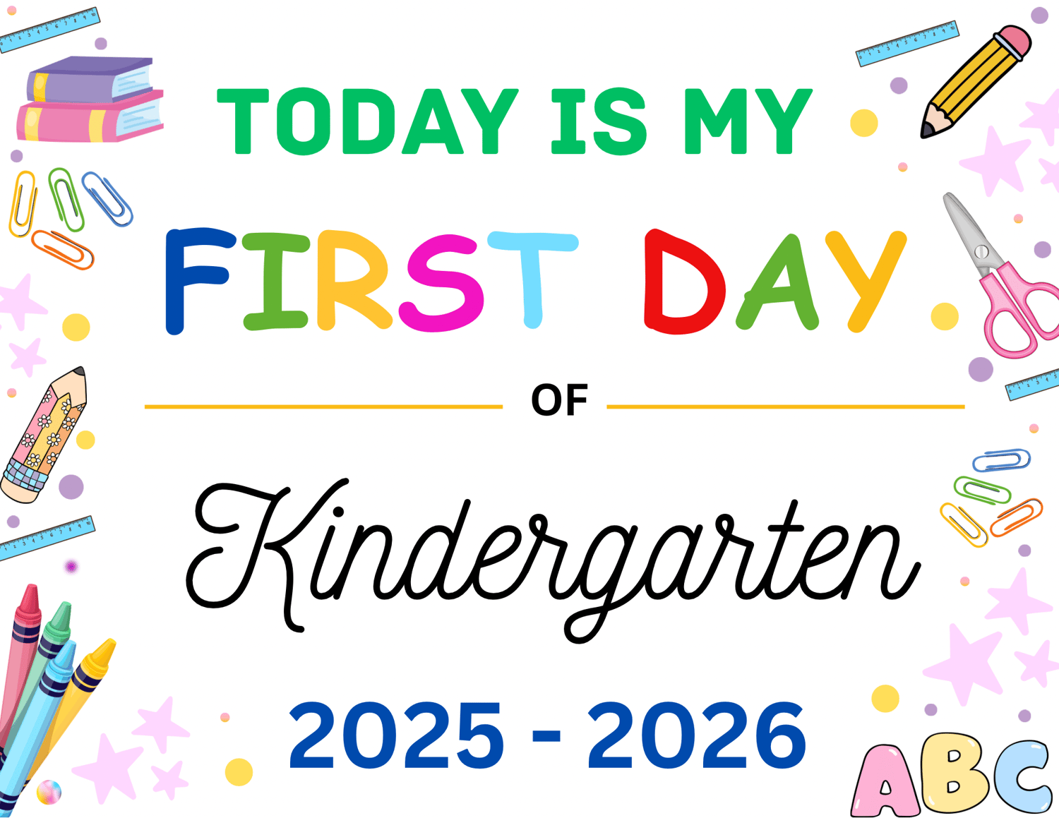 Celebrate your child’s big milestone with this adorable First Day of Kindergarten Sign! Perfect for snapping that classic back-to-school photo and creating memories that will last a lifetime.