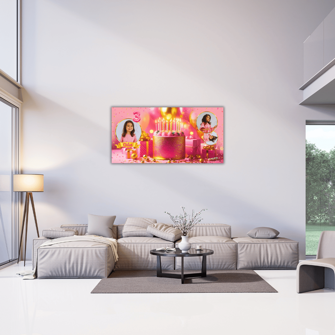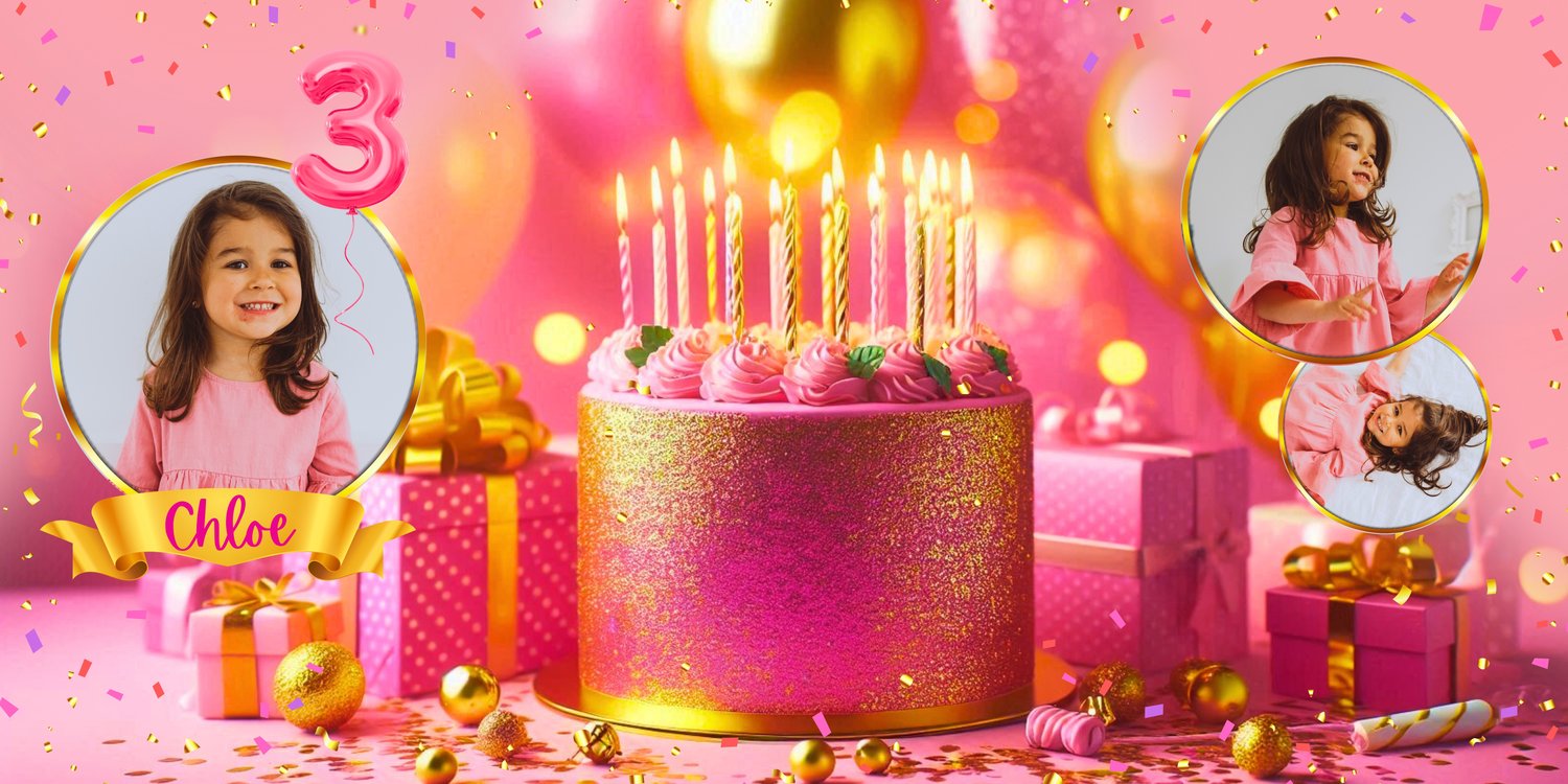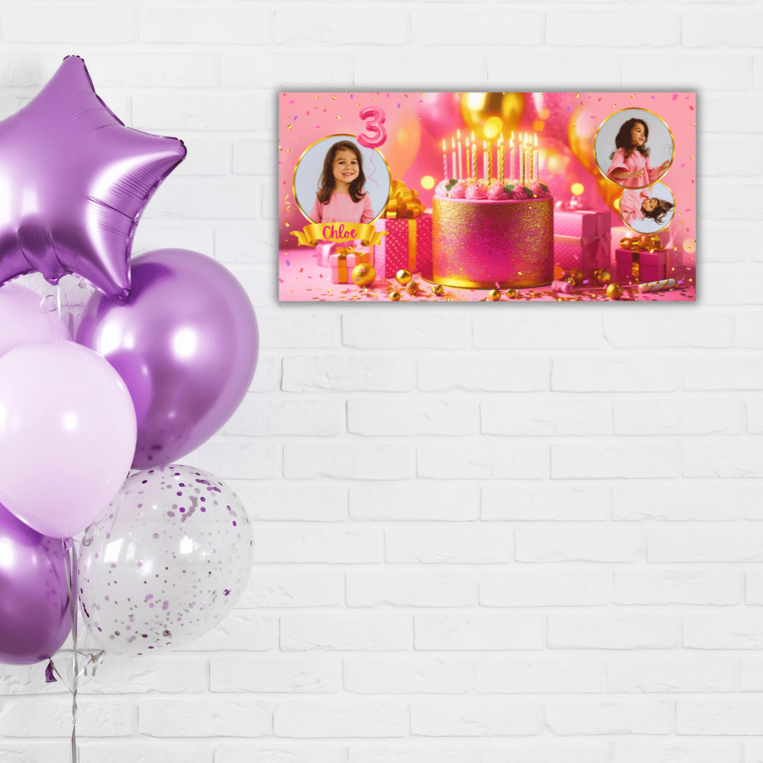 PINK & GOLD FULL BIRTHDAY BANNER – 1240 x 1748 px EDITABLE DIGITAL DOWNLOAD
