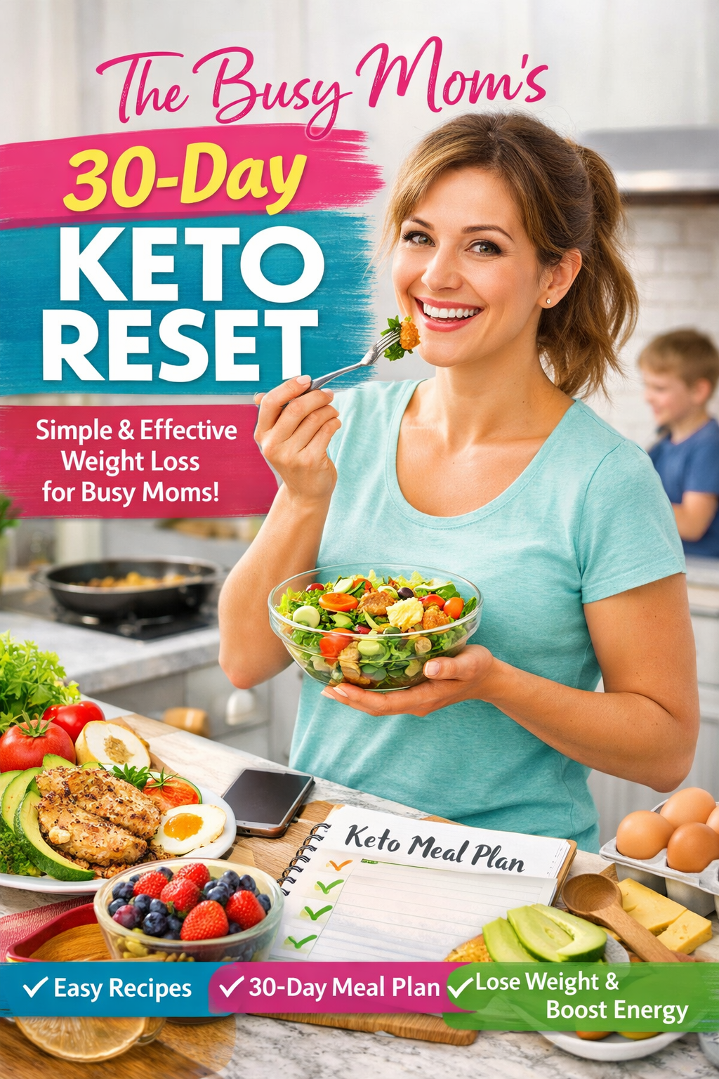 The Busy Mom’s 30-Day Keto Reset is a practical, no-fluff digital ebook designed specifically for women who want to lose weight, feel confident, and regain energy — without spending hours in the kitchen or giving up their favorite foods.