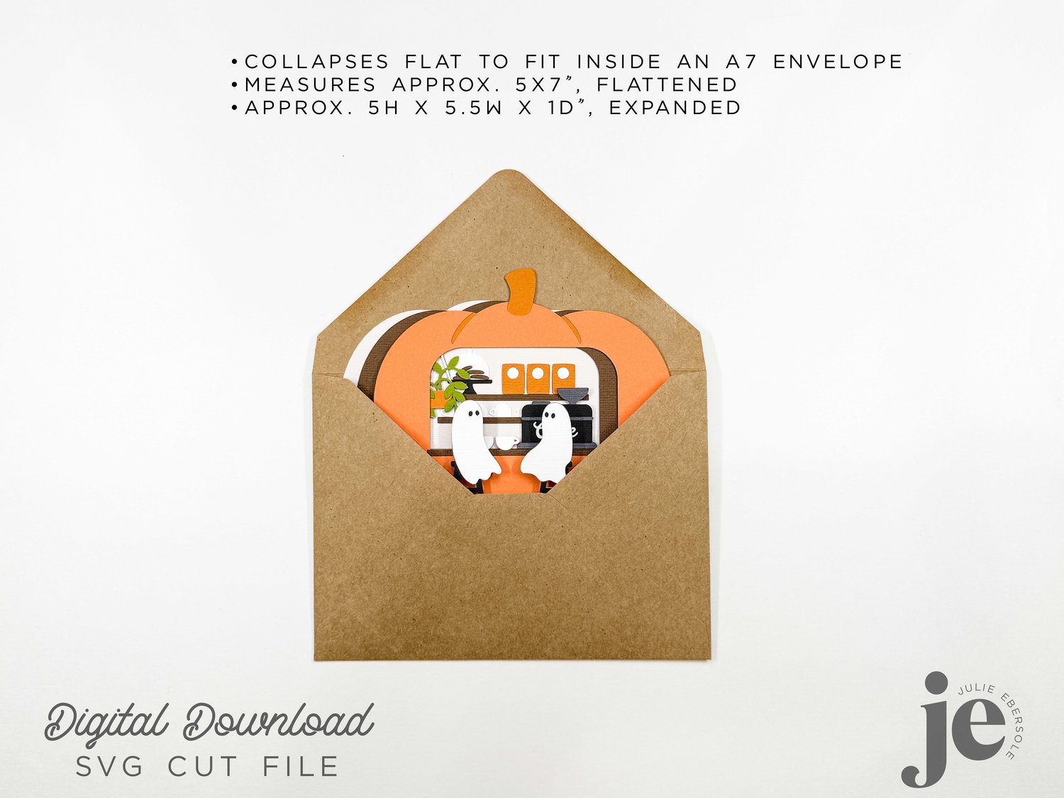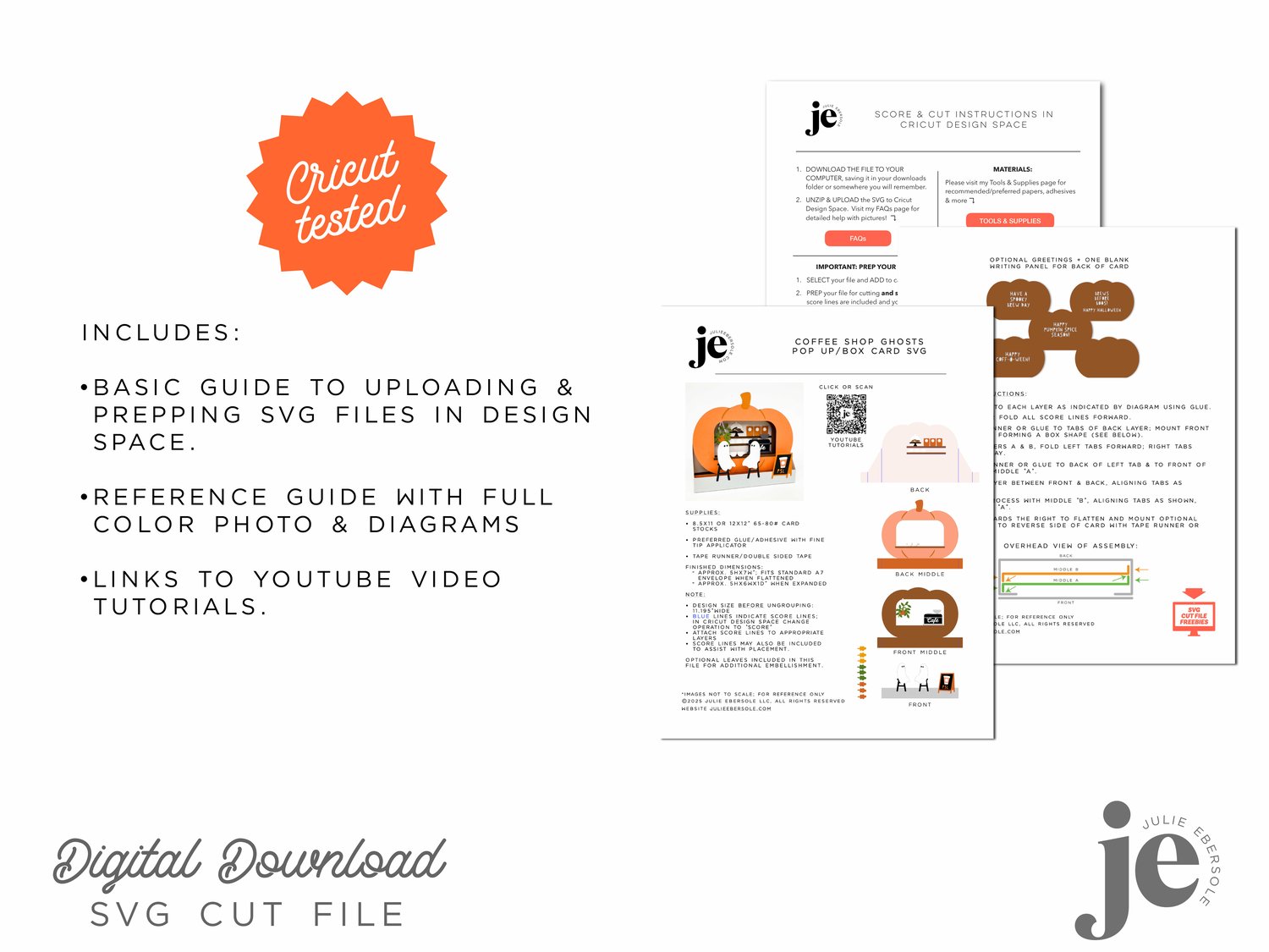 - SVG files for a 3D Halloween Coffee Shop Ghosts Pop-Up/Box Card, with a variety of sentiment options as well as a blank one for the back, to customize as you wish.