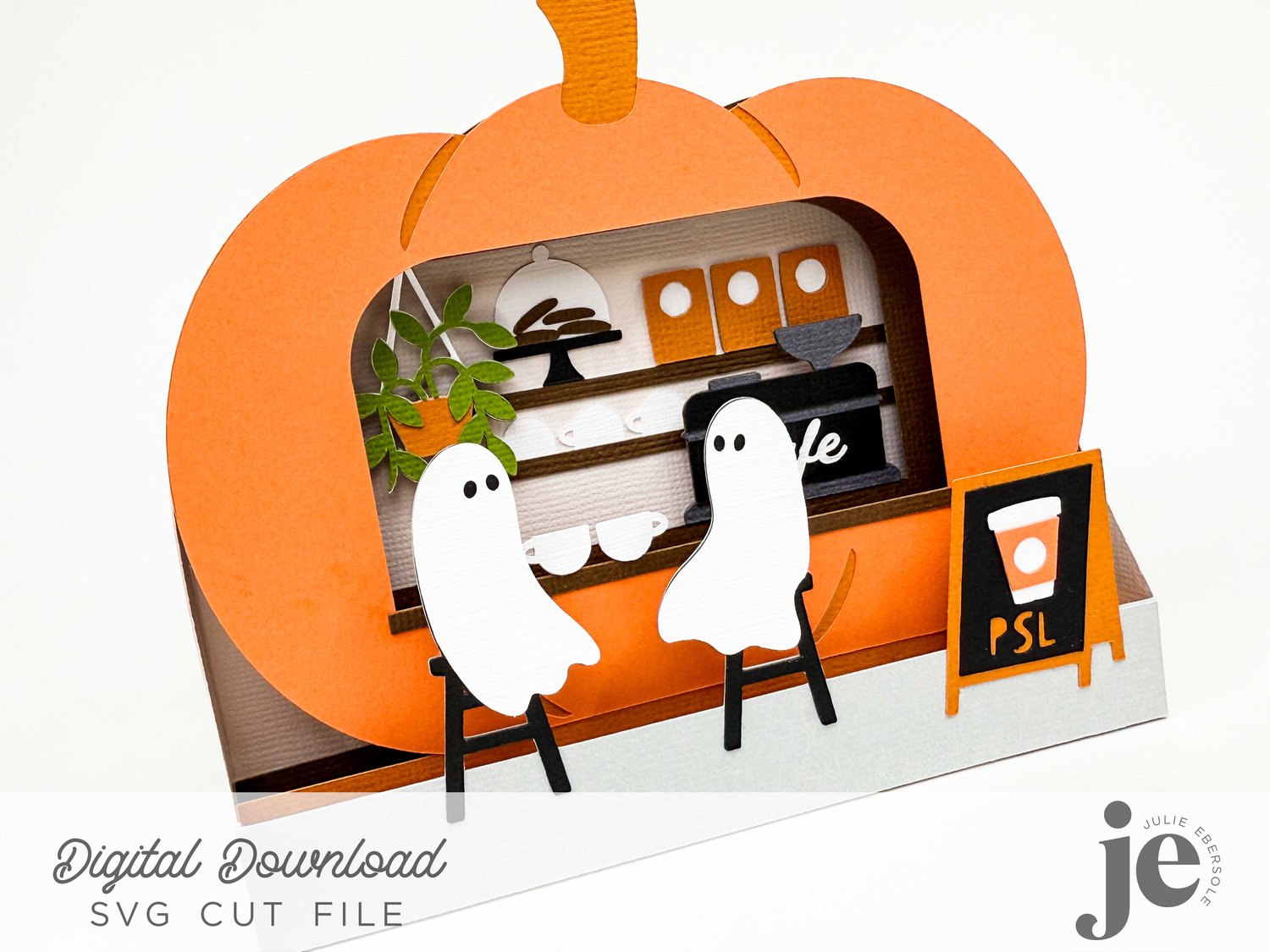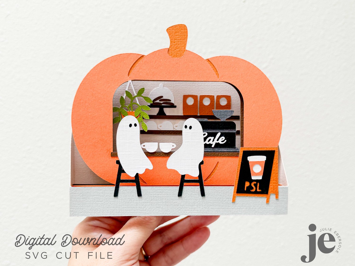 COFFEE SHOP GHOSTS POP UP BOX CARD SVG | 3D Papercut Card Cut File | for Cricut, Silhouette
