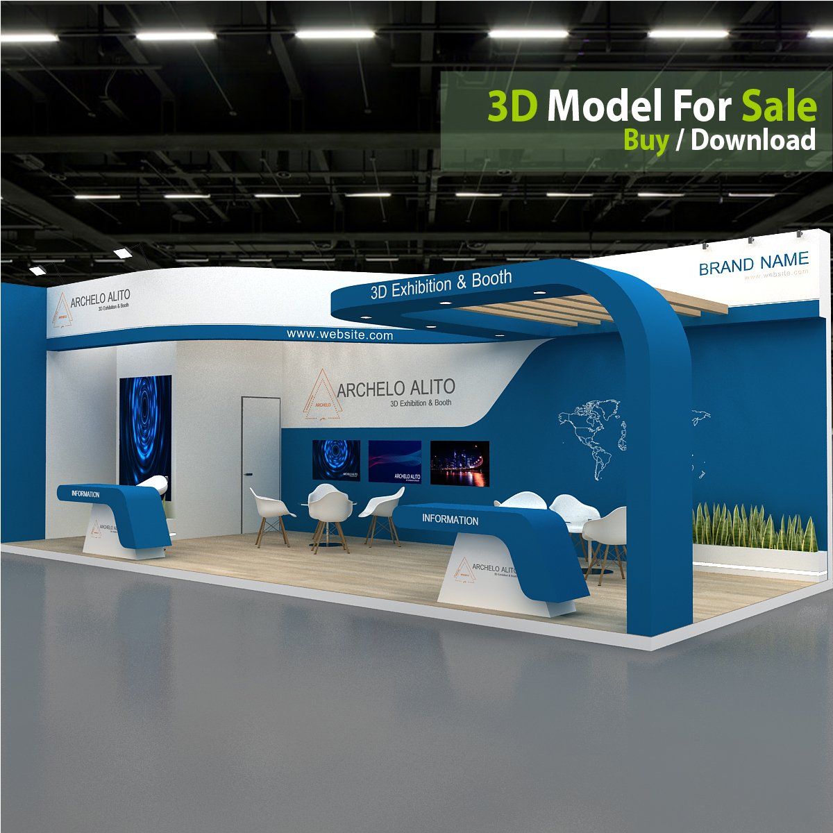 This professional 3D booth model is designed for exhibitions, trade shows, expos, fairs, and event displays.