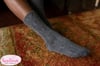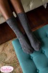 The men in my life have very definite ideas of what makes an appropriate for work sock: typically a neutral color and a very subdued pattern, if they want patterning at all. The simple twisted rib in these cuff-down, heel-flap socks transitions into a small cable panel that runs down the outside of the leg to the toes.